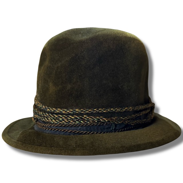 60s STETSON Fedora Hat ハリウッドスターやミュージシャン、大統領など各著名人にも愛されたブランドの"STETSON" 歴史自体も古く1865年に始まった元祖カウボーイハットやウエスタンハットでも名高い老舗のハットメーカー そんな中でも定番の中折れ帽と呼ばれるモデル 所謂STETSONの中でも王道な形ですね 流石老舗ブランドといった作りは健在で、ハット自体の生地感もとても良く高級感もかなり感じる作り そして裏張りはレザーになっていて、年代が古い物ほど硬化もしやすい中でもしっかりと被れる肌触りの良い状態 サイズ自体も"7 1/4"とかぶれる方も多いであろう、日本人にピッタリな良いサイズ 個人的にも好きなアイテムですが、今だと被っている方も少ないからこそ寧ろ今被るのも良いのでは...と思ってます 現行でも未だ続いているブランドですが、だからこそしっかりと年代やディテールなどにこだわって選びたいですね サイズ: 7 1/4 内径 約58.5cm 使用感程度です ツクダ #stetson #ステットソン