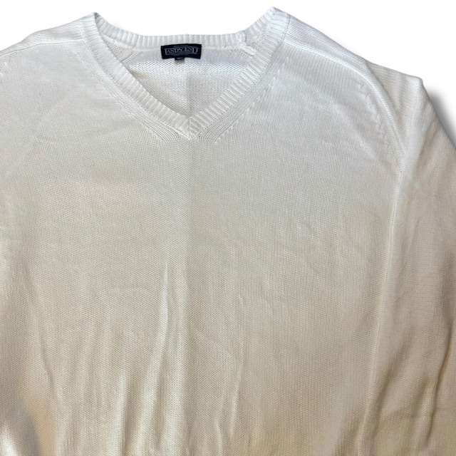 90s LAND'S END V Neck Cotton Dirfter Knit "White"