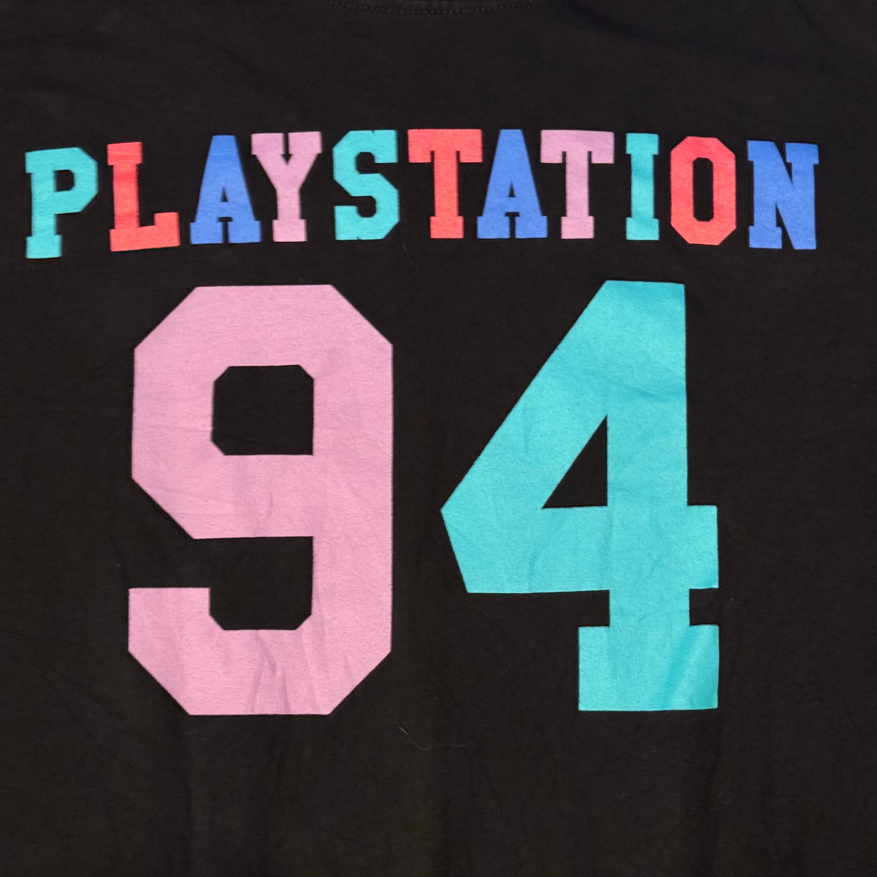 袖に文字が入る物や片袖デザインの物が多い中で、こちらは右袖にはプレステのロゴ・左袖にはプレステのコントローラーのボタンのデザインが入ります