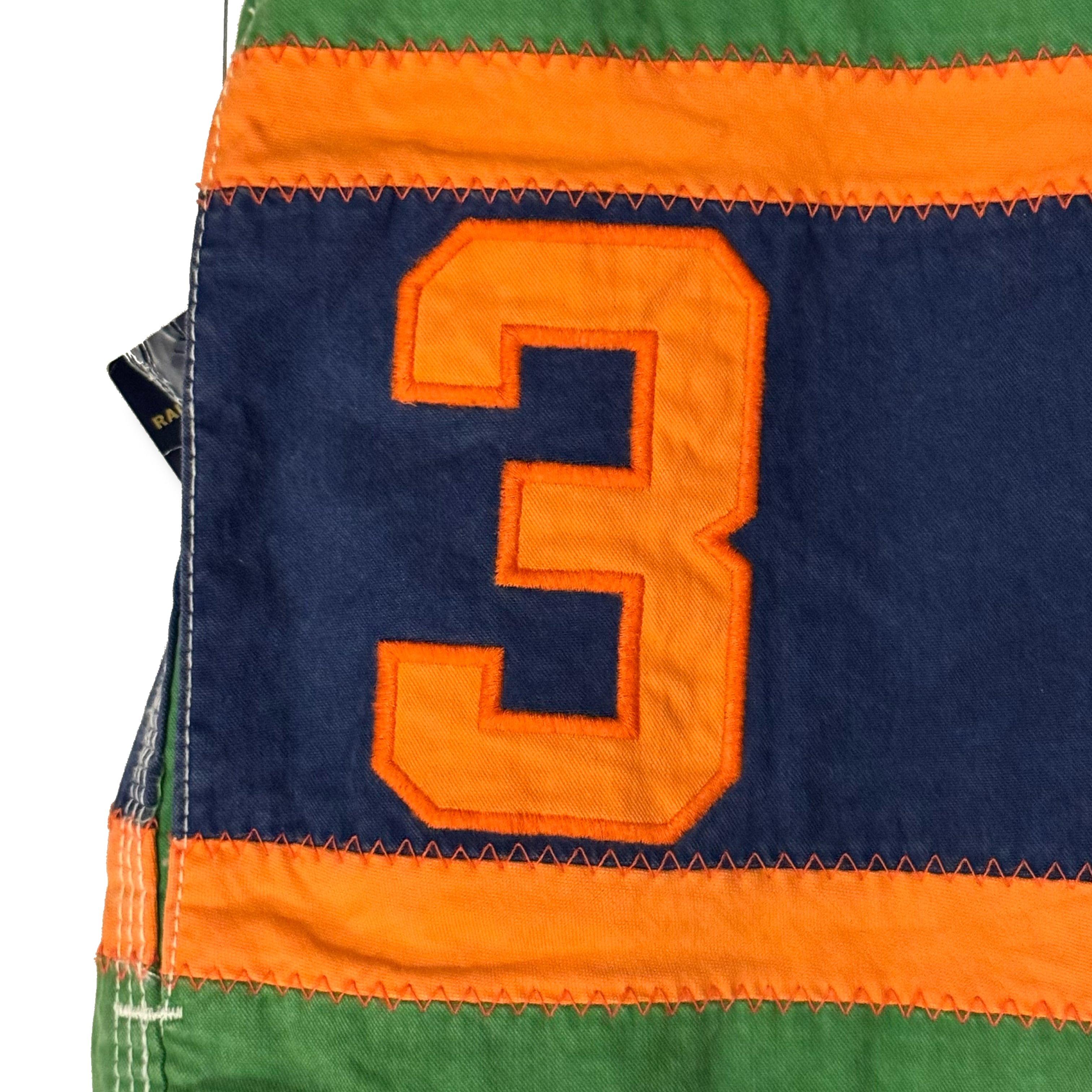緑・オレンジ・ネイビーのマルチカラーストライプ配色が良い1本