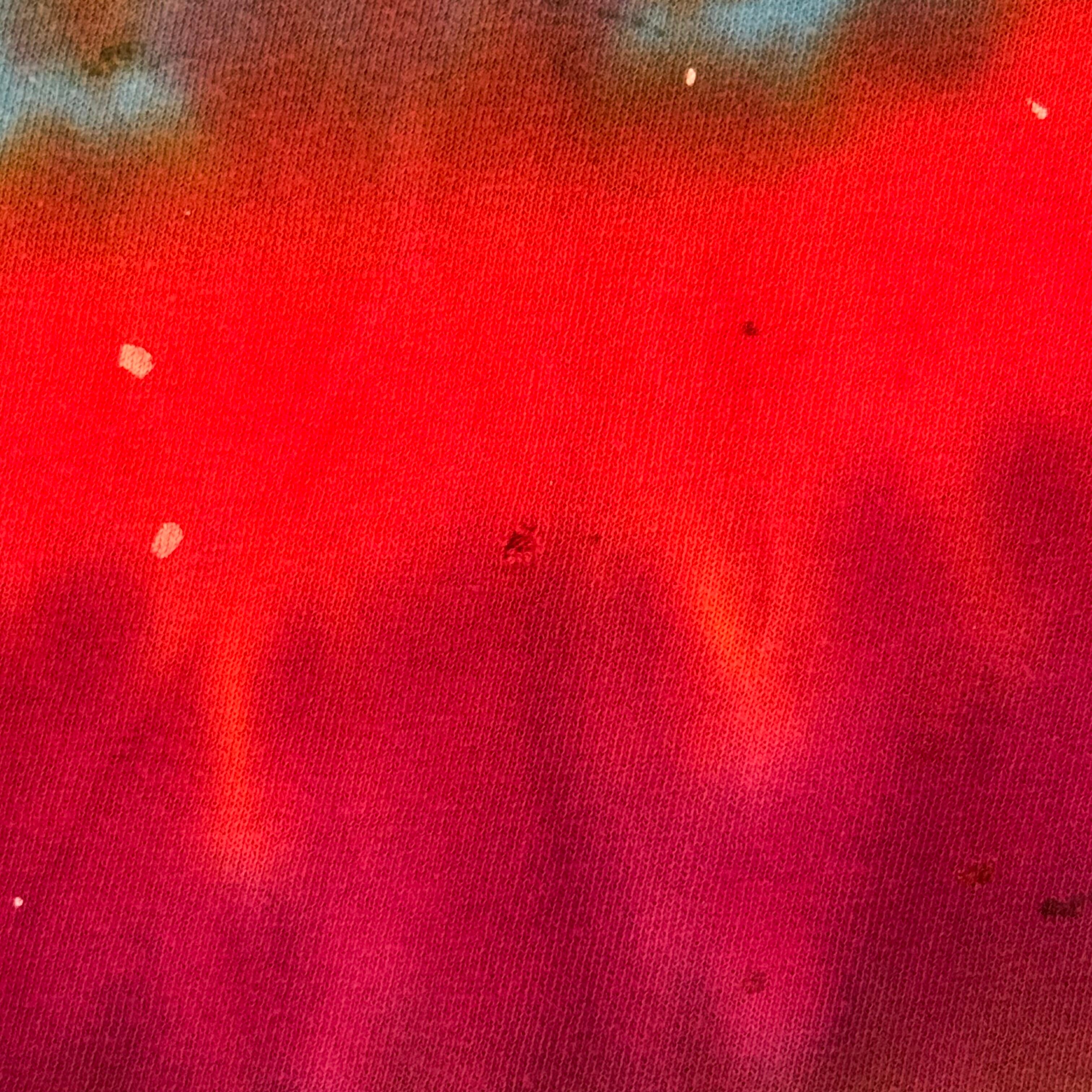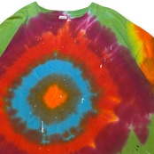 この手の配色のタイダイ柄はジャストサイズで着てしまうと、どうしても70年代辺りのヒッピー感が強くなってしまうので今っぽく着るならこの2Xなどのサイズ感を選びたい所!