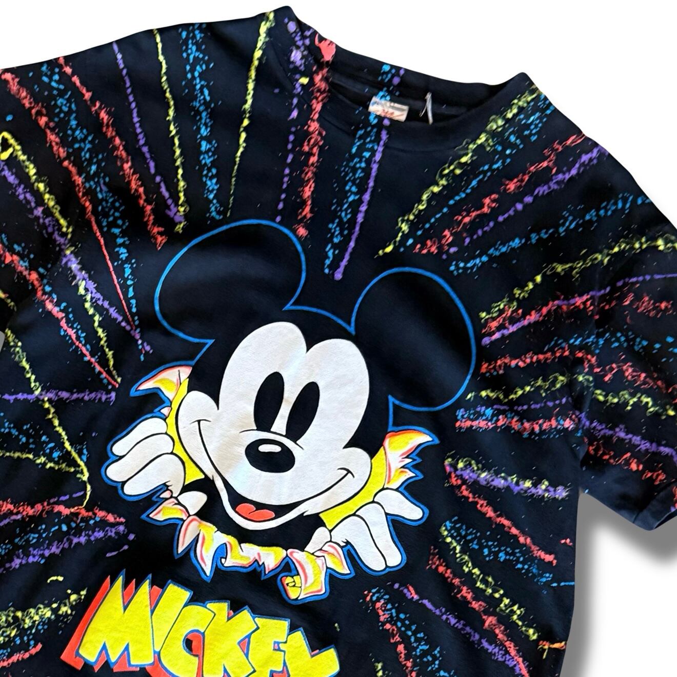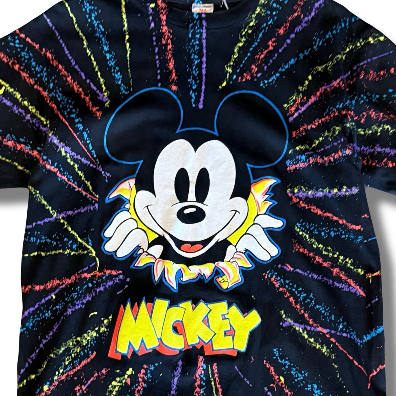 〜90sミッキー飛び出しカラフルデザインTシャツ