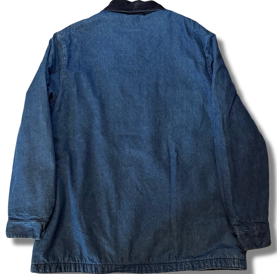 デニムの色味もまだまだ濃く残り、それと同色に入る襟のコーデュロイの切り替えし