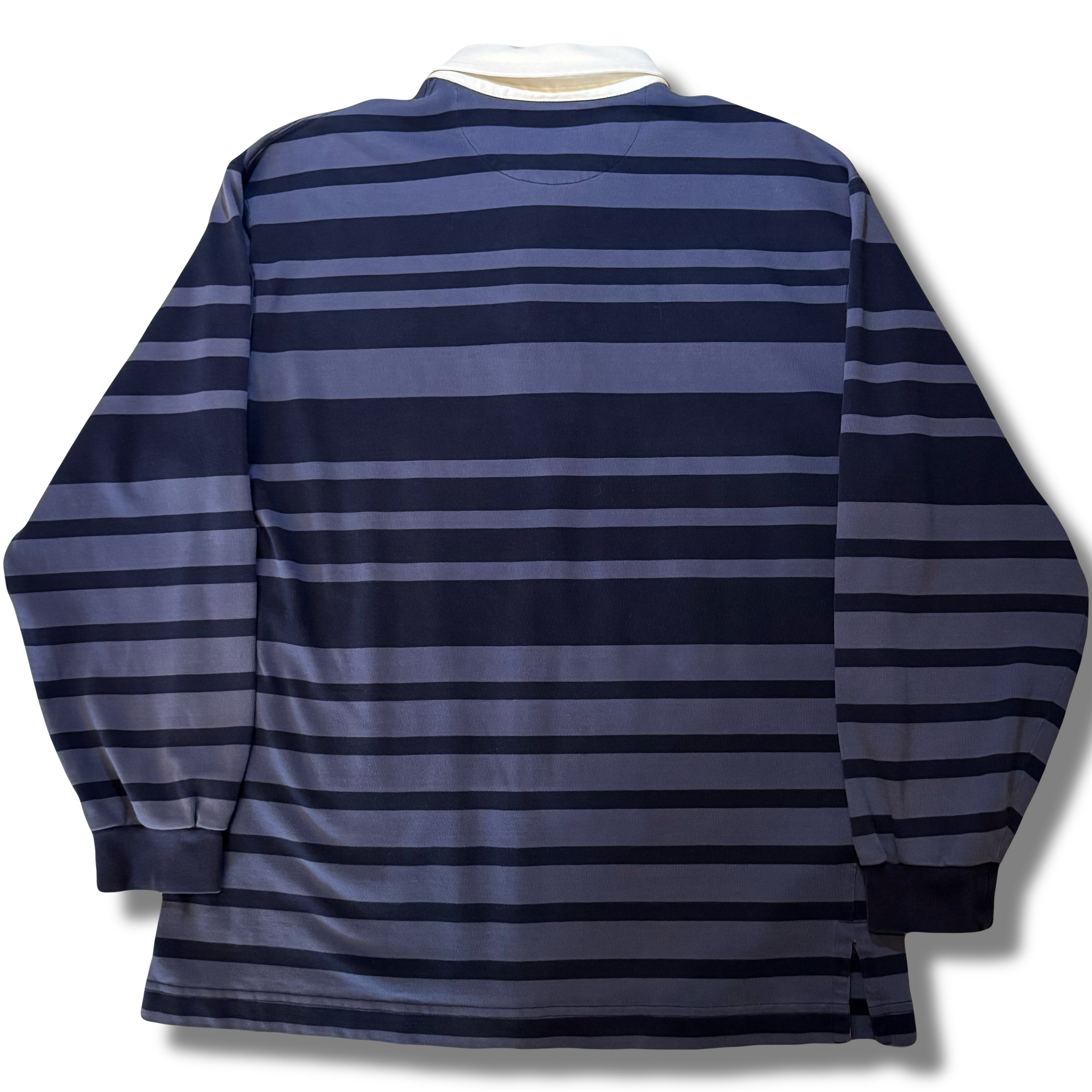 ボーダーのデザインがラグビーシャツの中でも定番のデザインパターンですが、こちらはボーダーのピッチ幅がランダムになったあまり見ないパターン