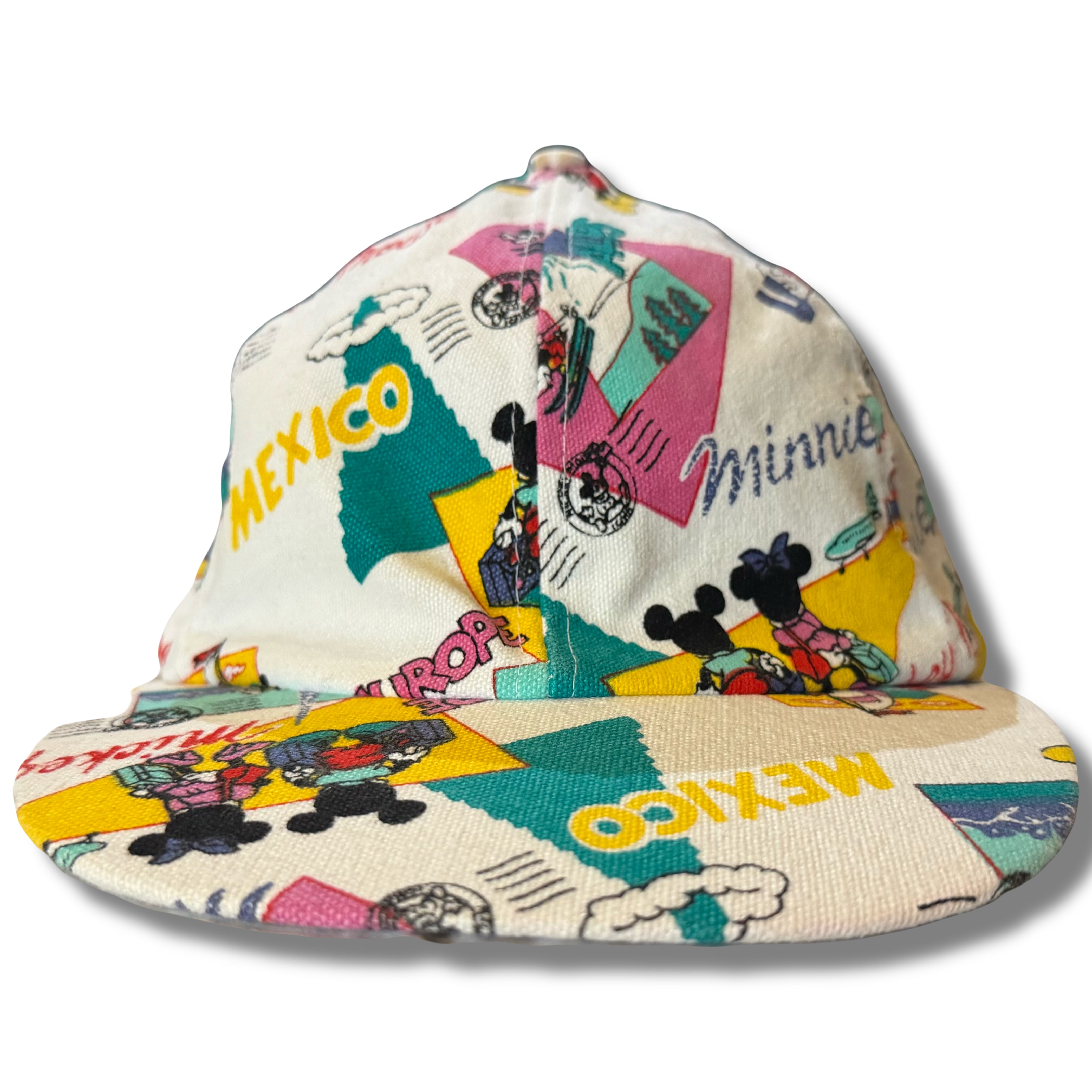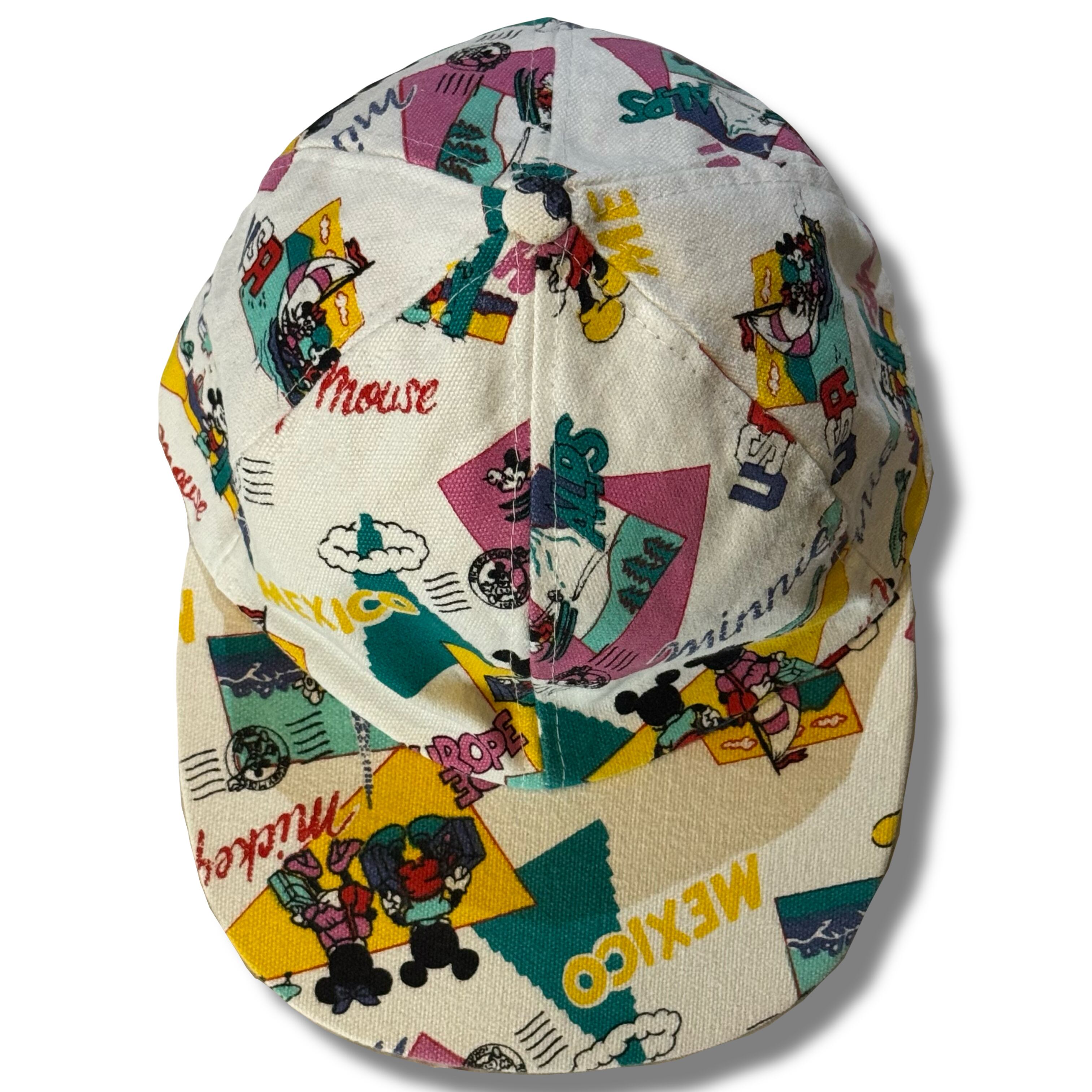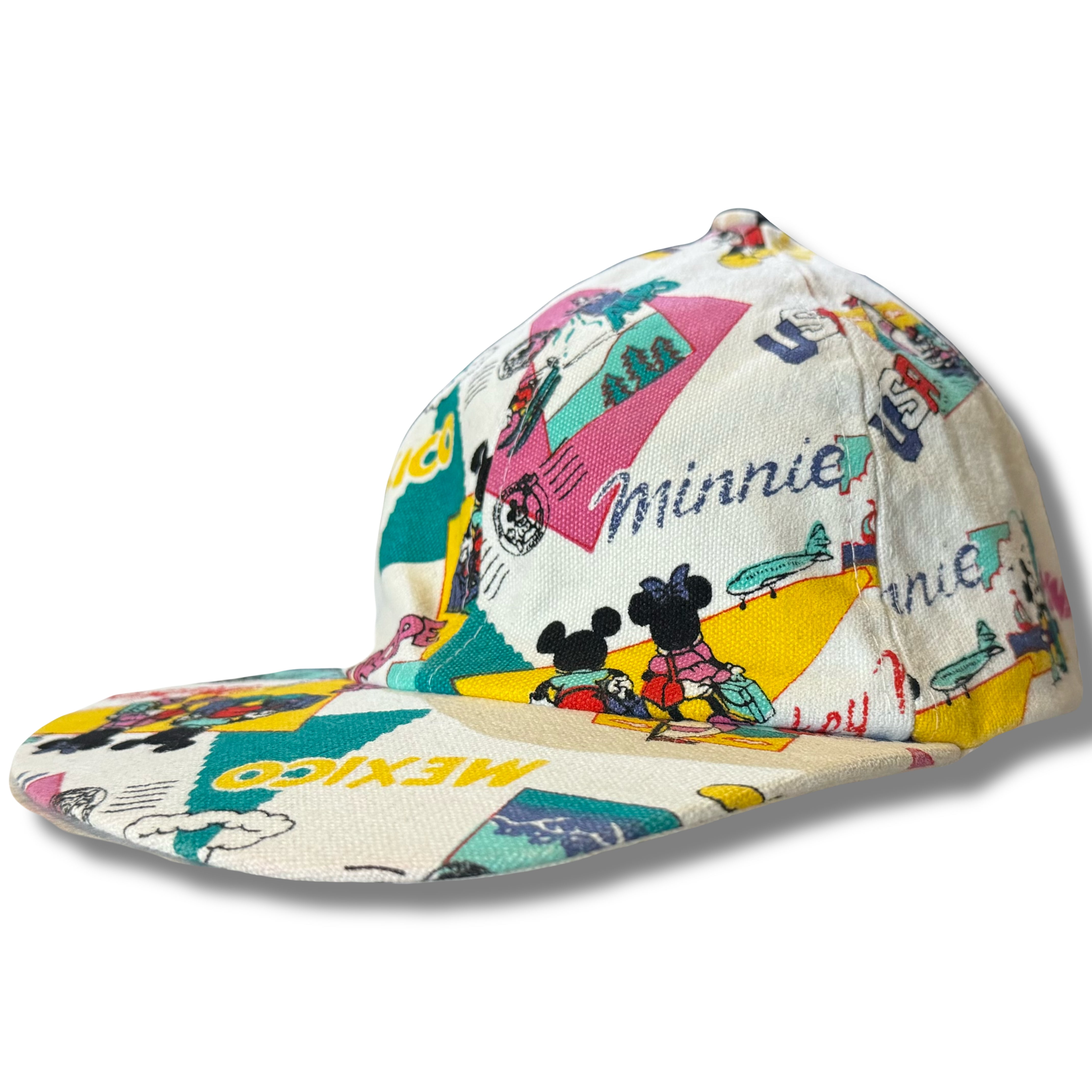 〜90s ミッキーとミニーの世界旅行 総柄デザインキャップ