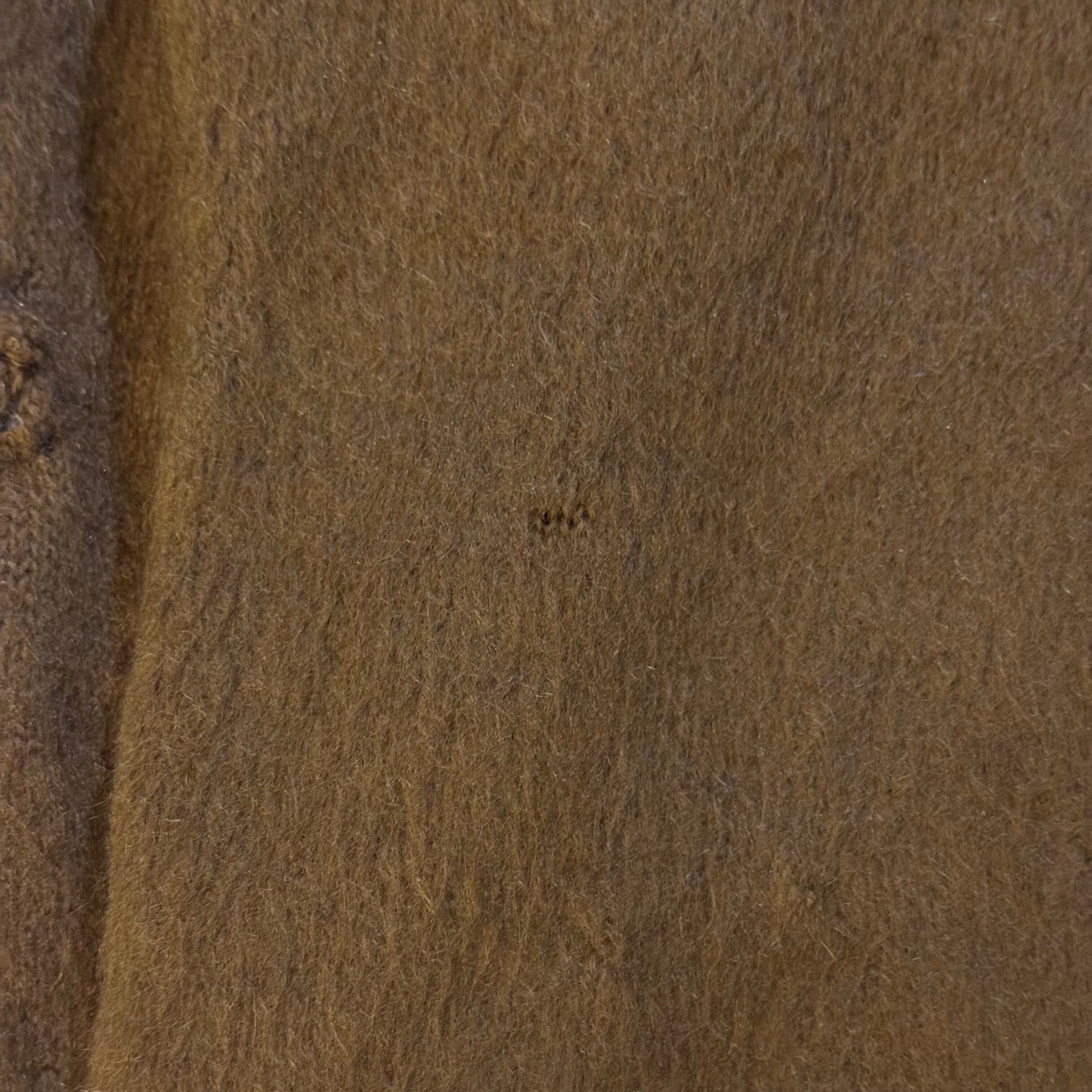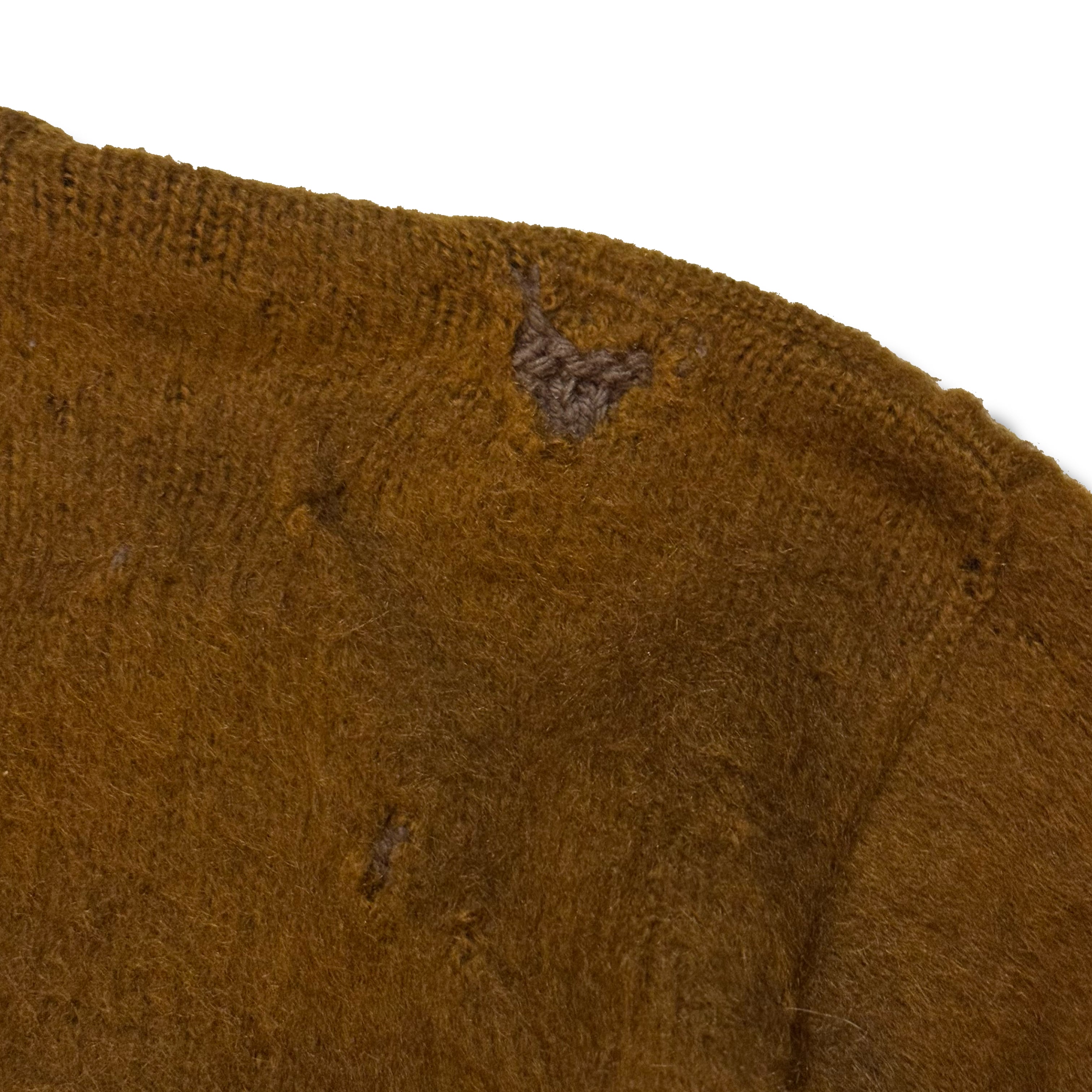 モヘアの生地に近い濃いブラウンでしかもかぎ編みっぽく編まれており、リペアのクオリティもかなり高いですね