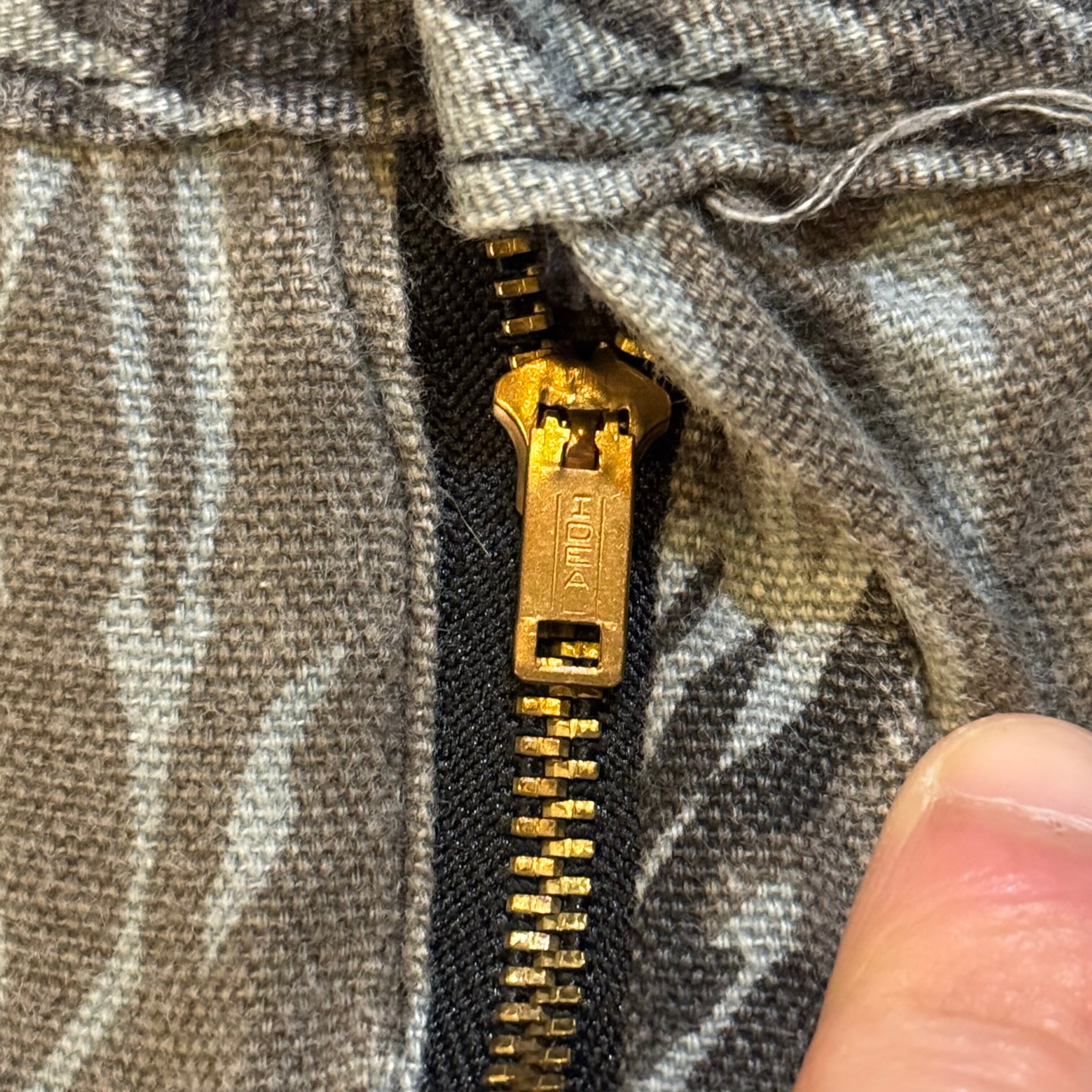 茶色ベースの縦タイガーストライプカモのパンツでも、こういうディテールやパーツなどヴィンテージっぽさもある良い個体
