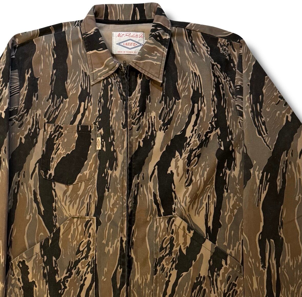 縦タイガーストライプカモの中でも人気な"NEET"社製のジップアップジャケット