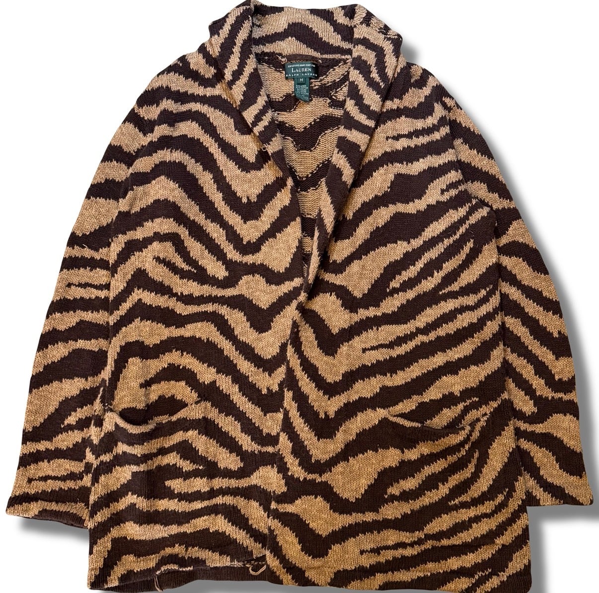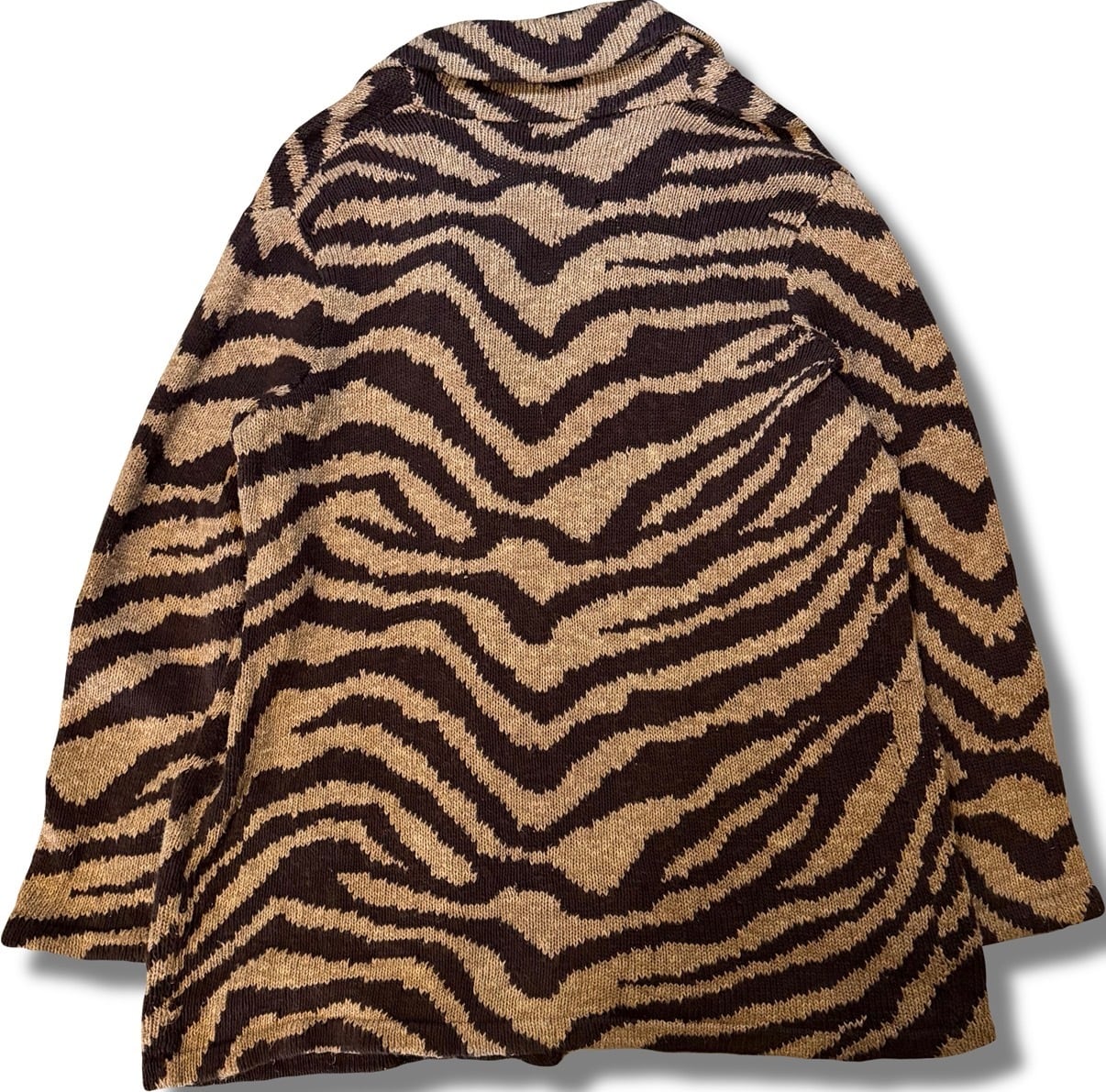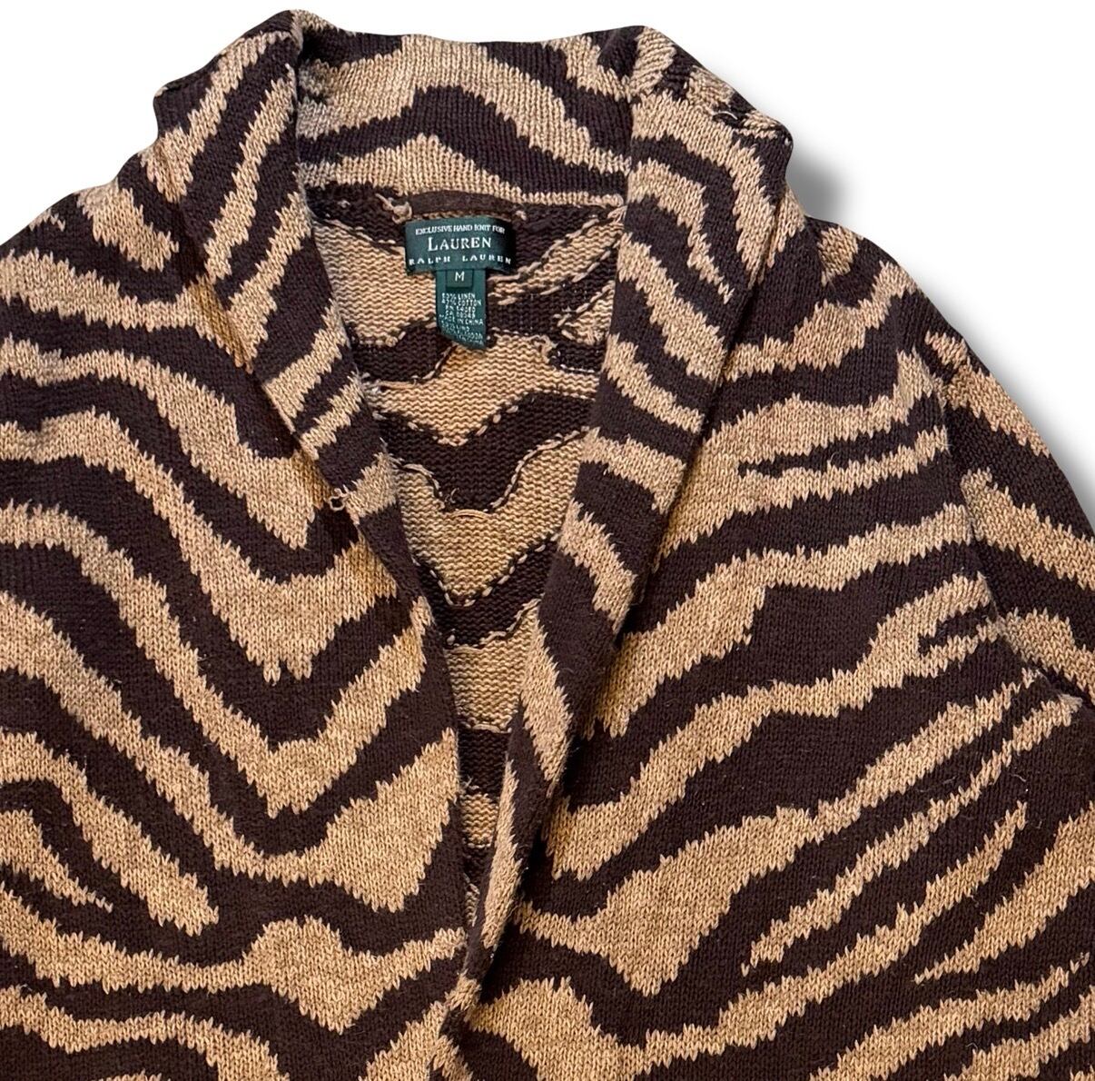 90s LAUREN "Hand Knit" Tiger Pattern Linen×Cotton Gown
