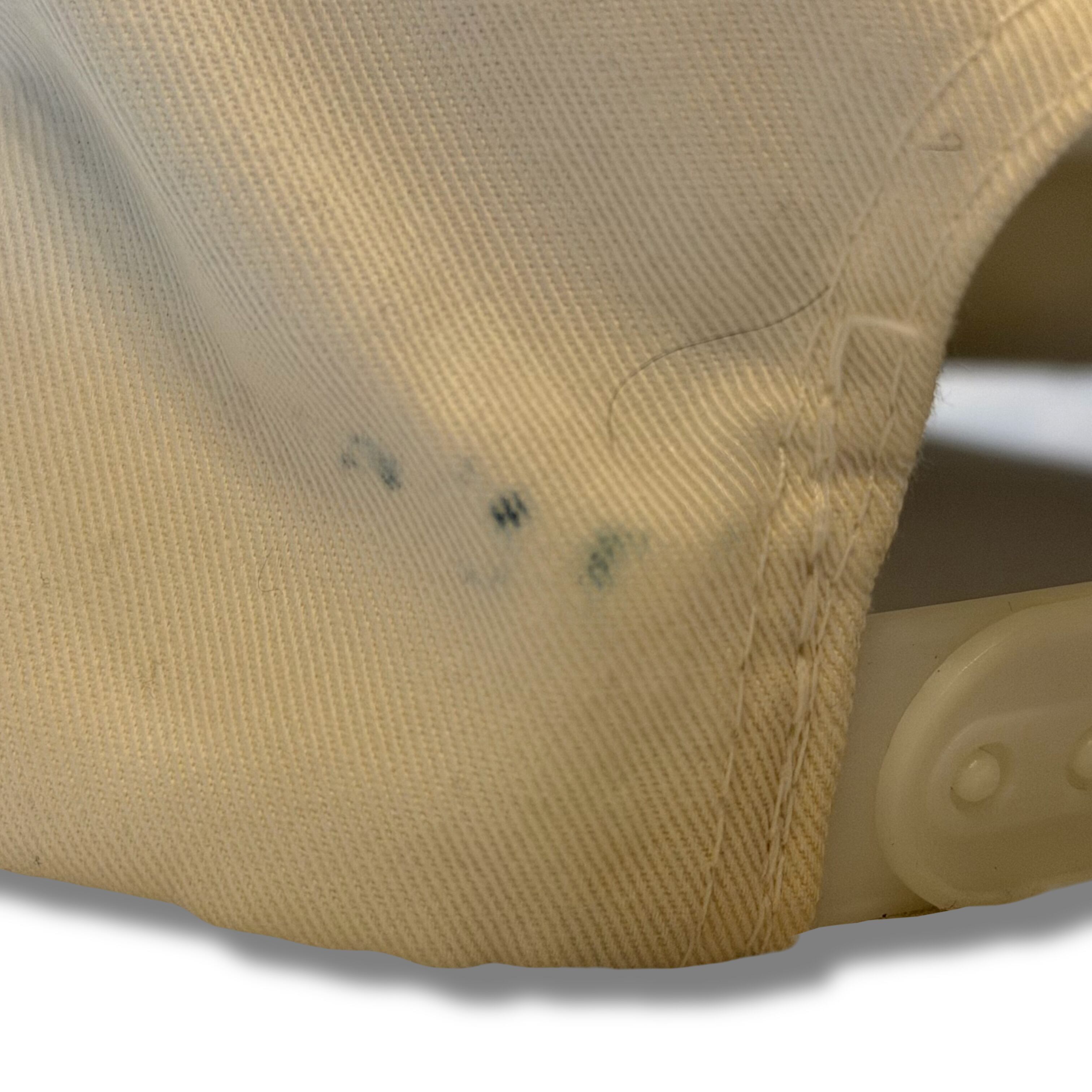 またデザインに若干の色抜けなどありますが、白のキャップで状態良い物だと逆に白が浮きやすくなってしまうからこそ、こういう雰囲気ある物のがコーデにも馴染みやすくなりますね!
