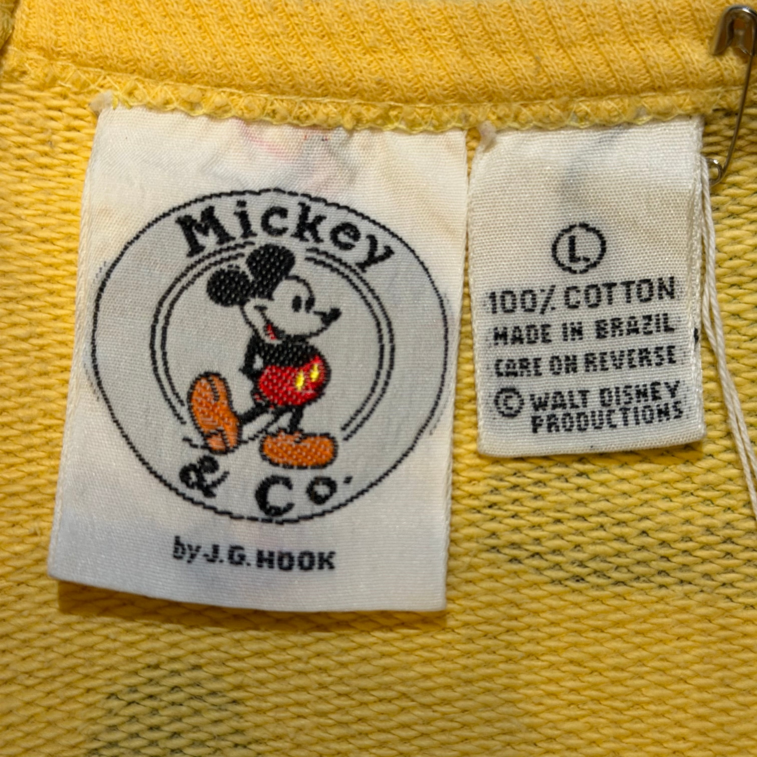 こちらは"ミッキー&コー"から販売されていた物になりますが、タグが1発古い後ろで手を組んでいるミッキーのデザインになった初期タグの1着!
