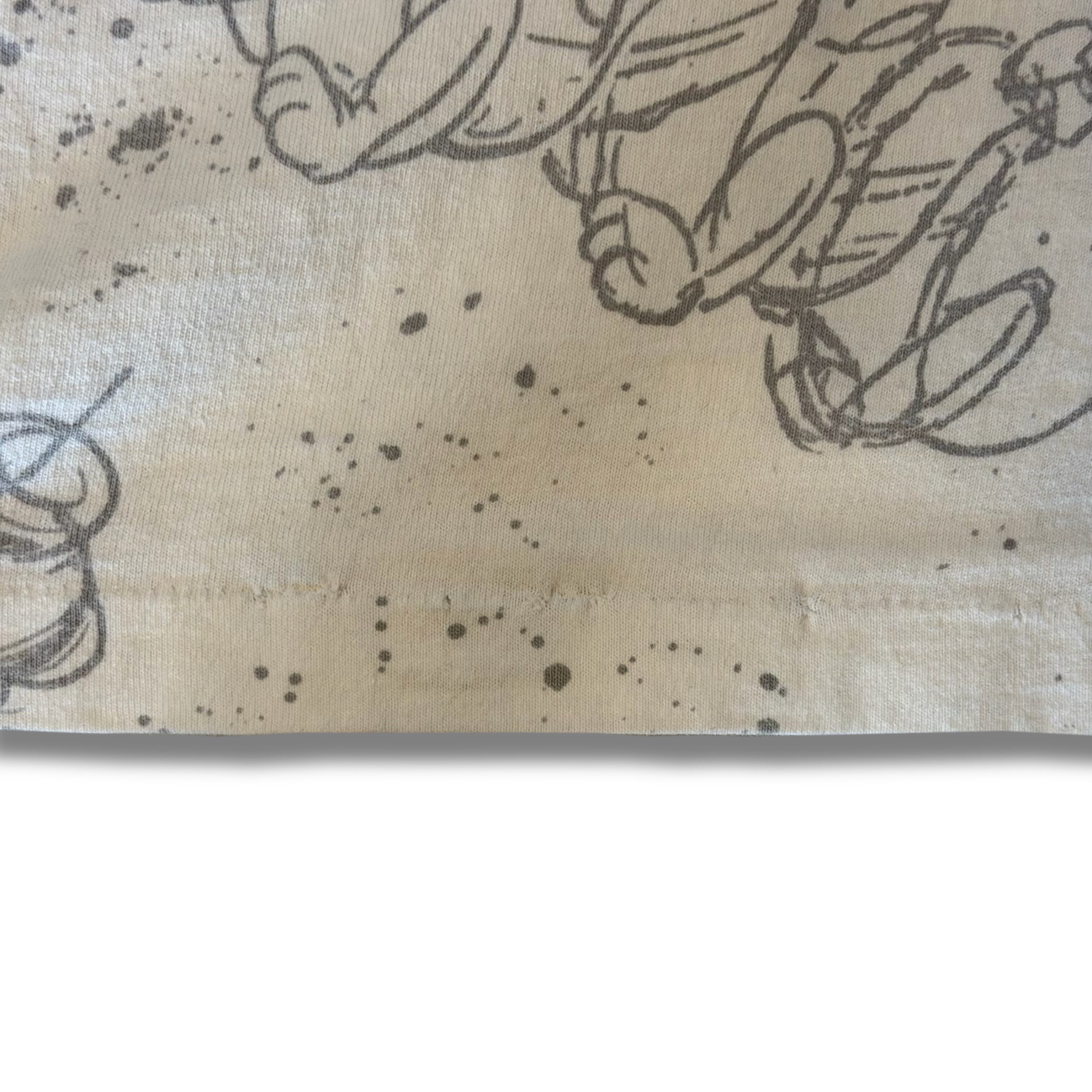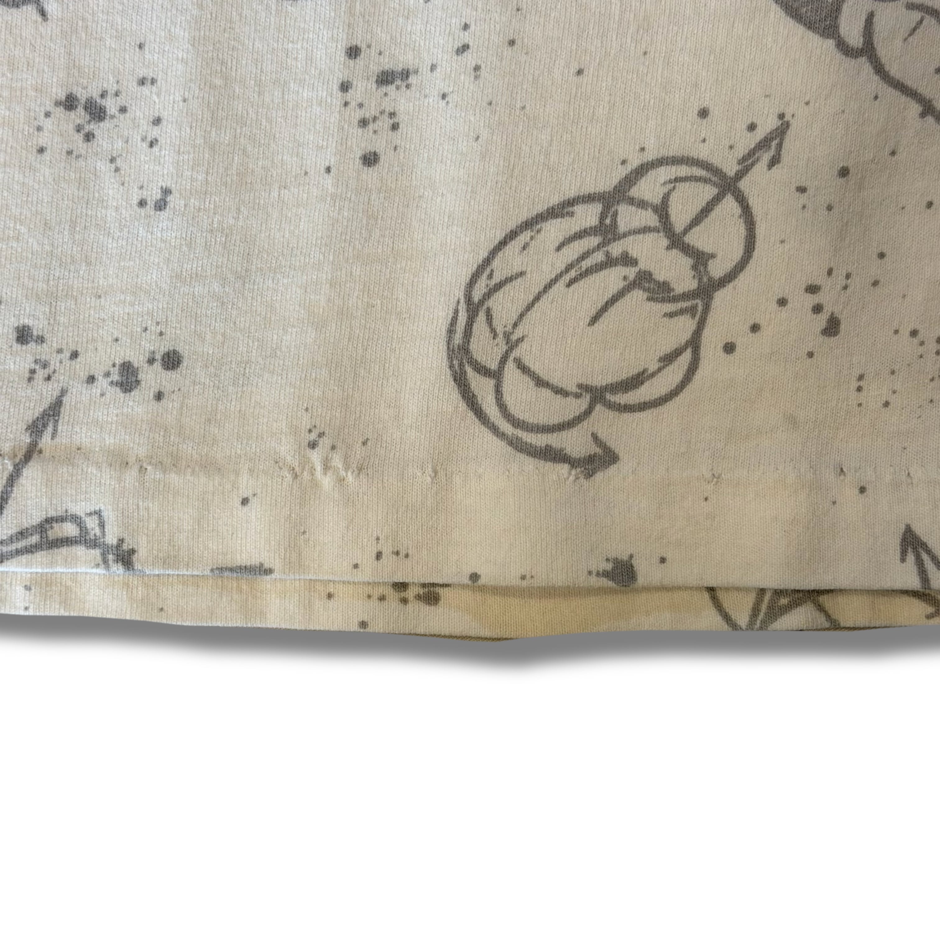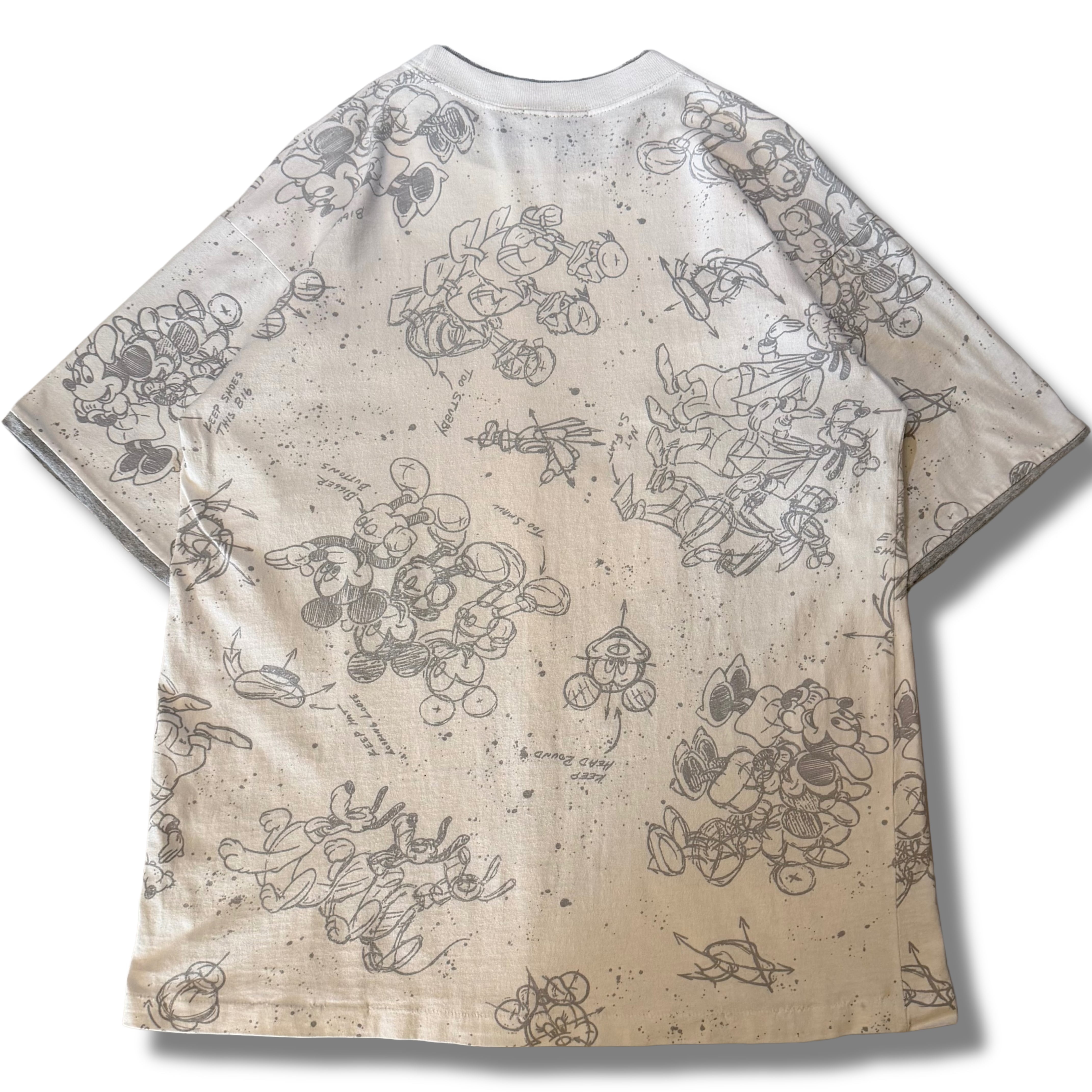 このアイテムは元々総柄デザインの布から作られ、そこからTシャツの形に製法してからドナルドのデザインを載せているというかなり手のかかるクオリティの高い作り◎