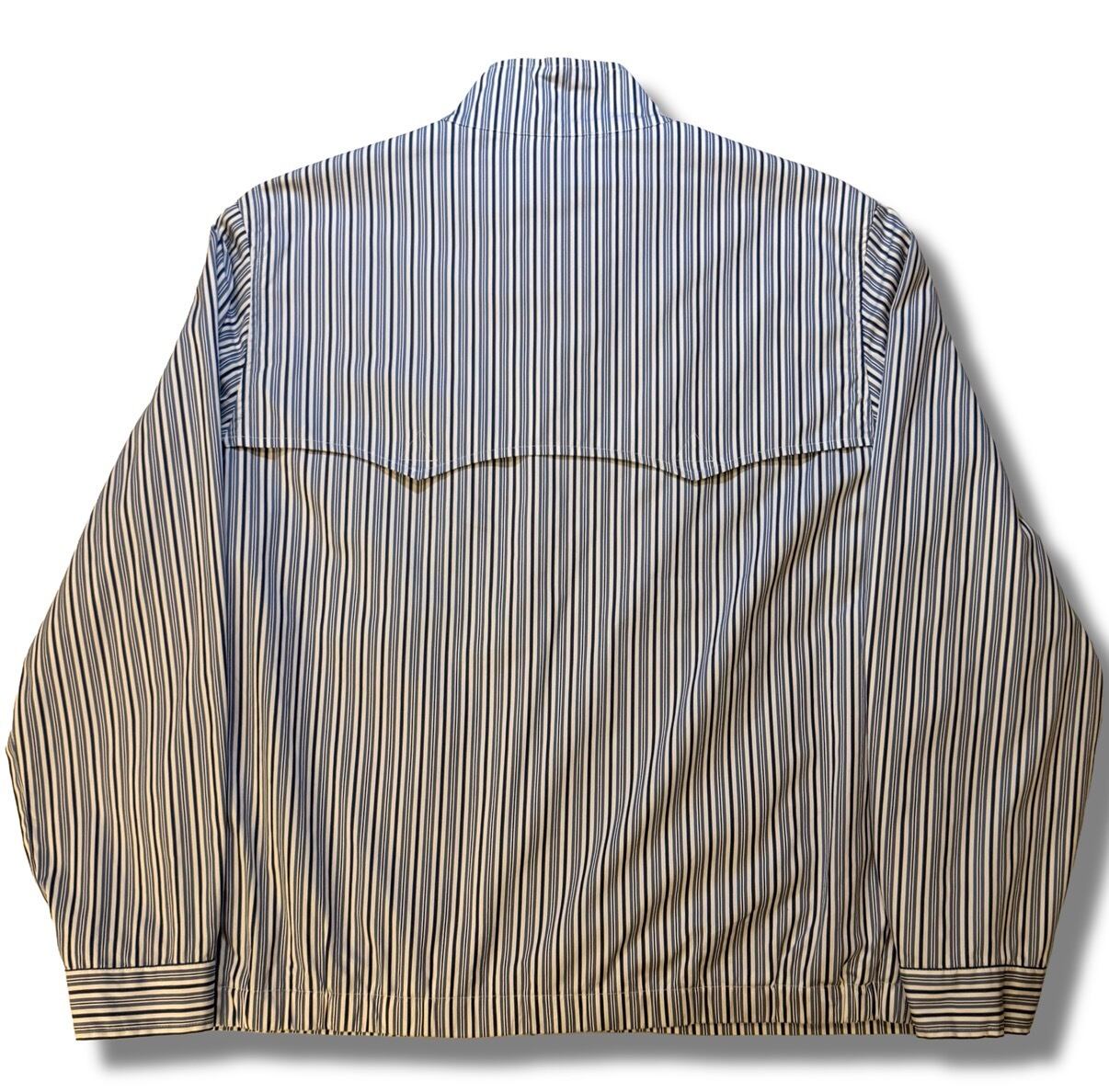 ヴィンテージでも人気が高いハリントンジャケットの形で、ストライプのピッチ幅が変わるストライプのパターンのデザイン