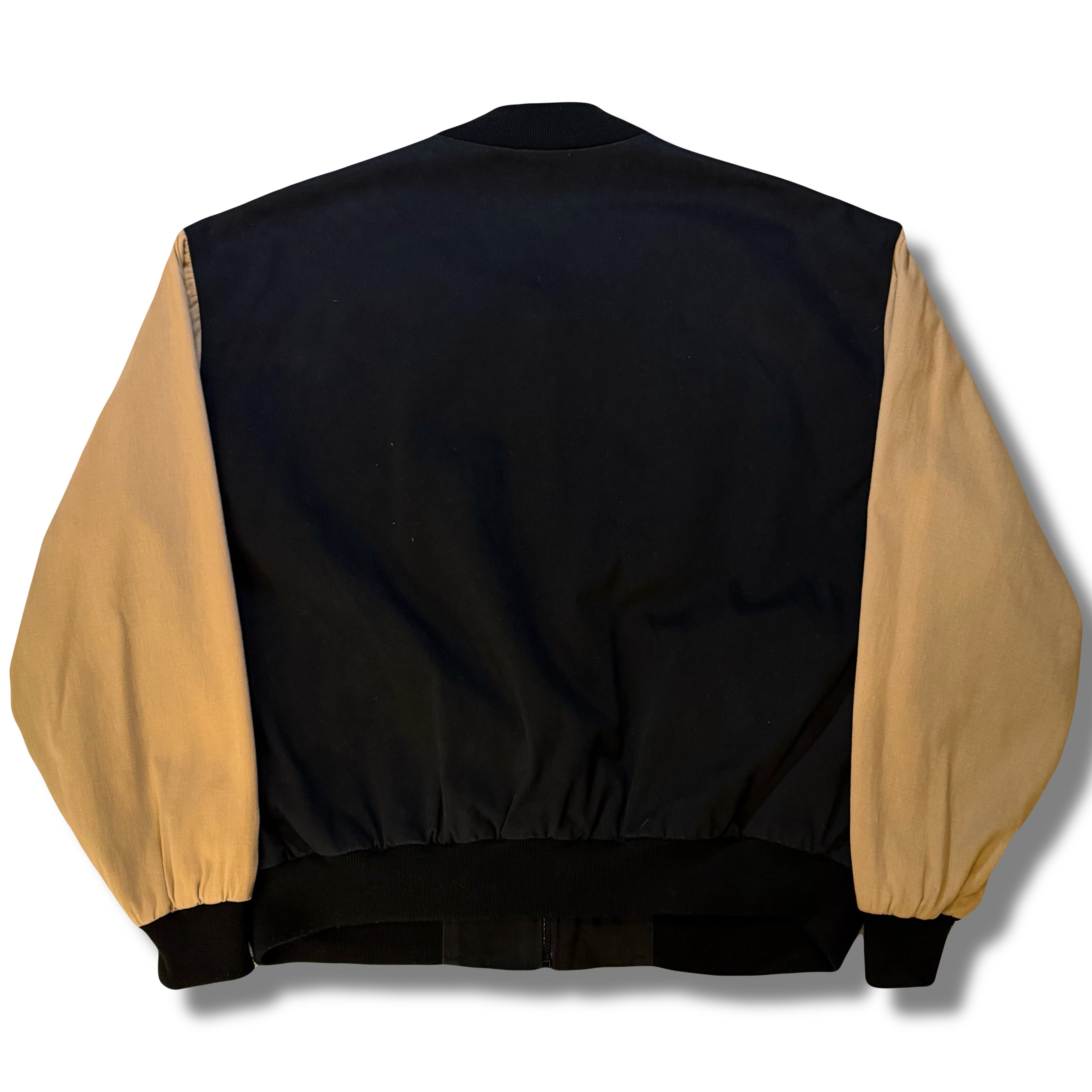 形でいえばスタジャンなどでもある2トーン仕様のブルゾンですが、生地感がコットンで統一された薄手でサラッと羽織りやすくなっています◎