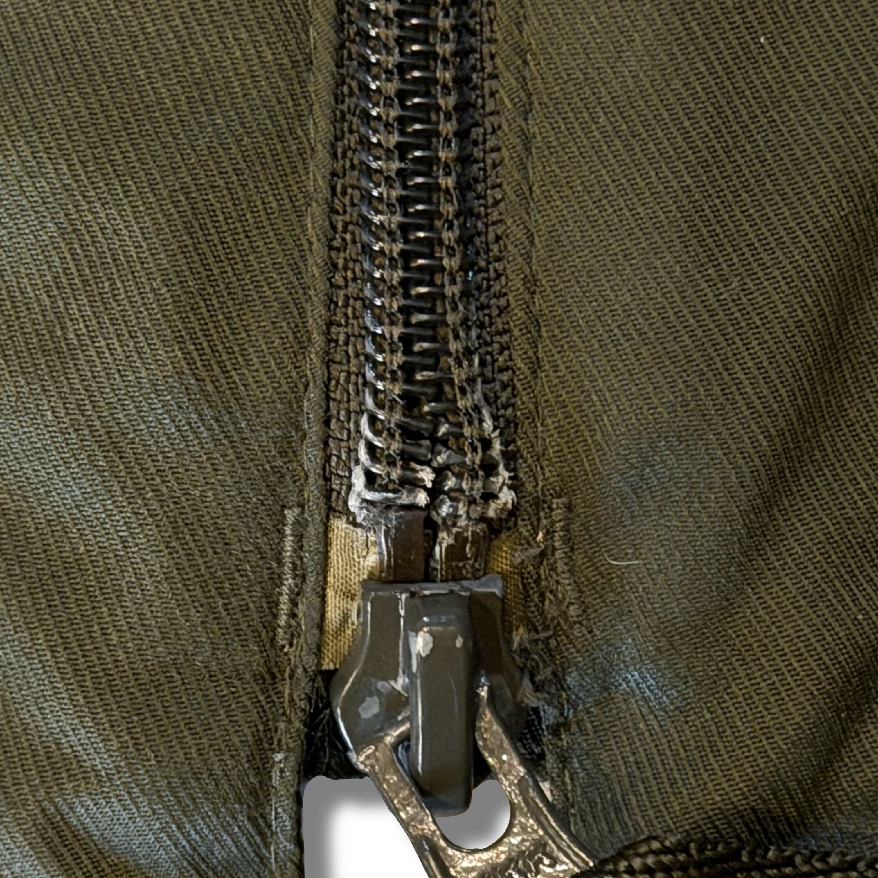フロント下のジップのパーツがズレてしまっており、上に上がらなくなっています