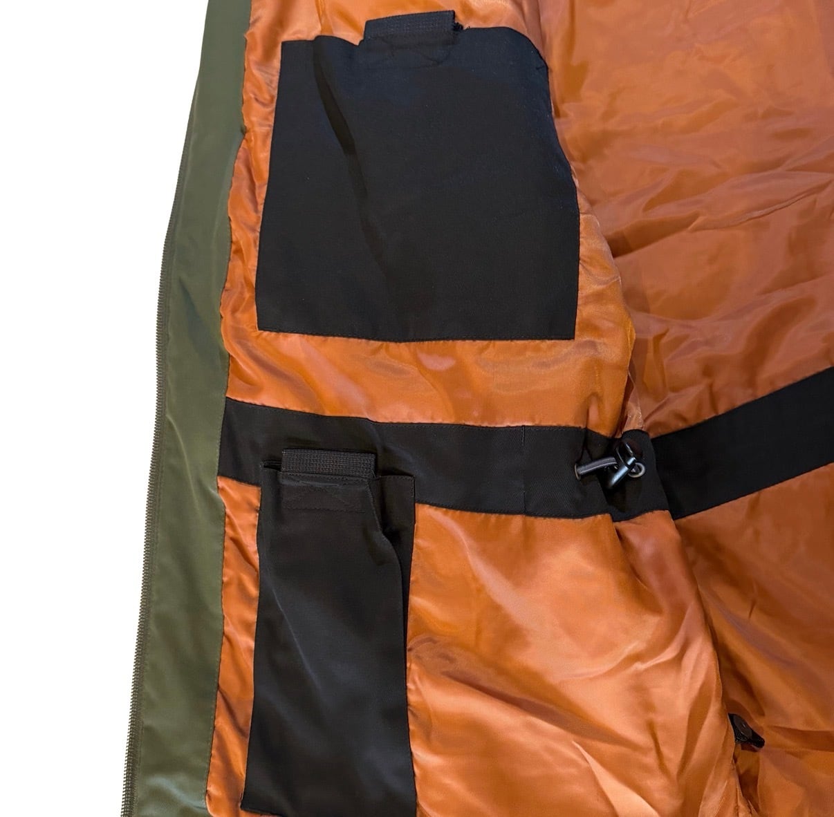 元々はダブルジップ仕様でしたが、下のパーツがズレてしまっているが為下のジップが上がらないですがジップはしっかりと開閉できる様になっています◎