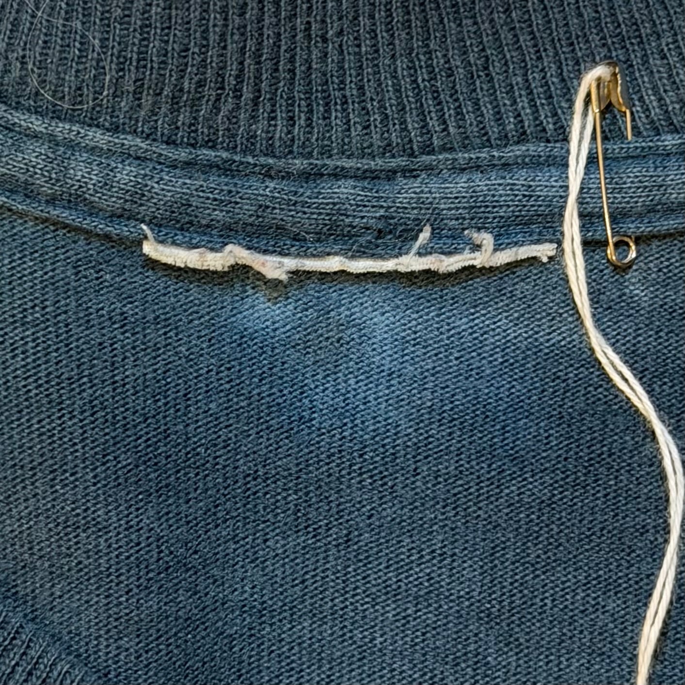 両ダブルステッチの丸胴、首リブ部分に複数箇所小穴があったのでリペアしてあります!