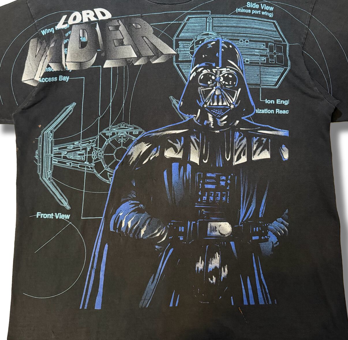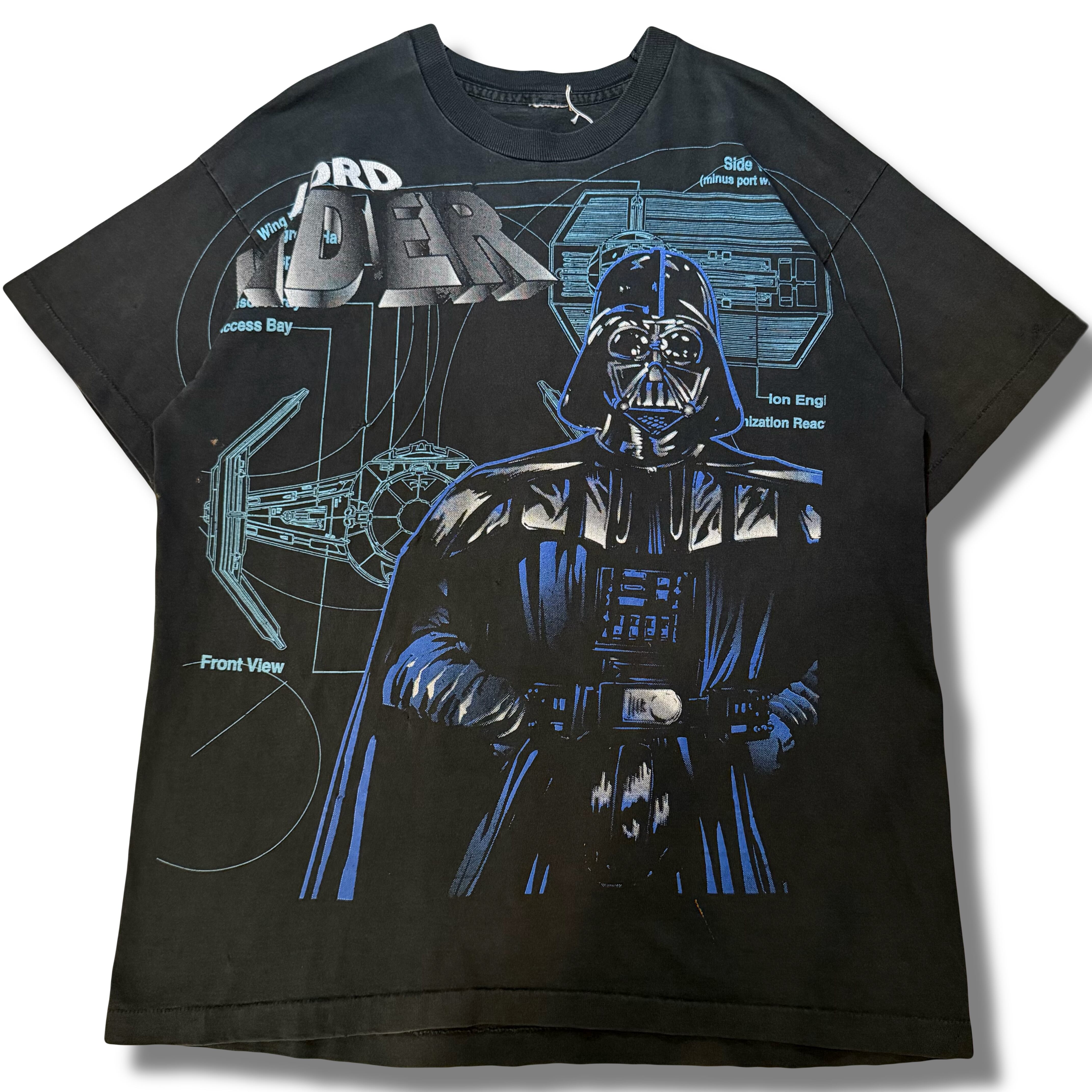 90s ダースベイダーと設計図総柄デザインTシャツ