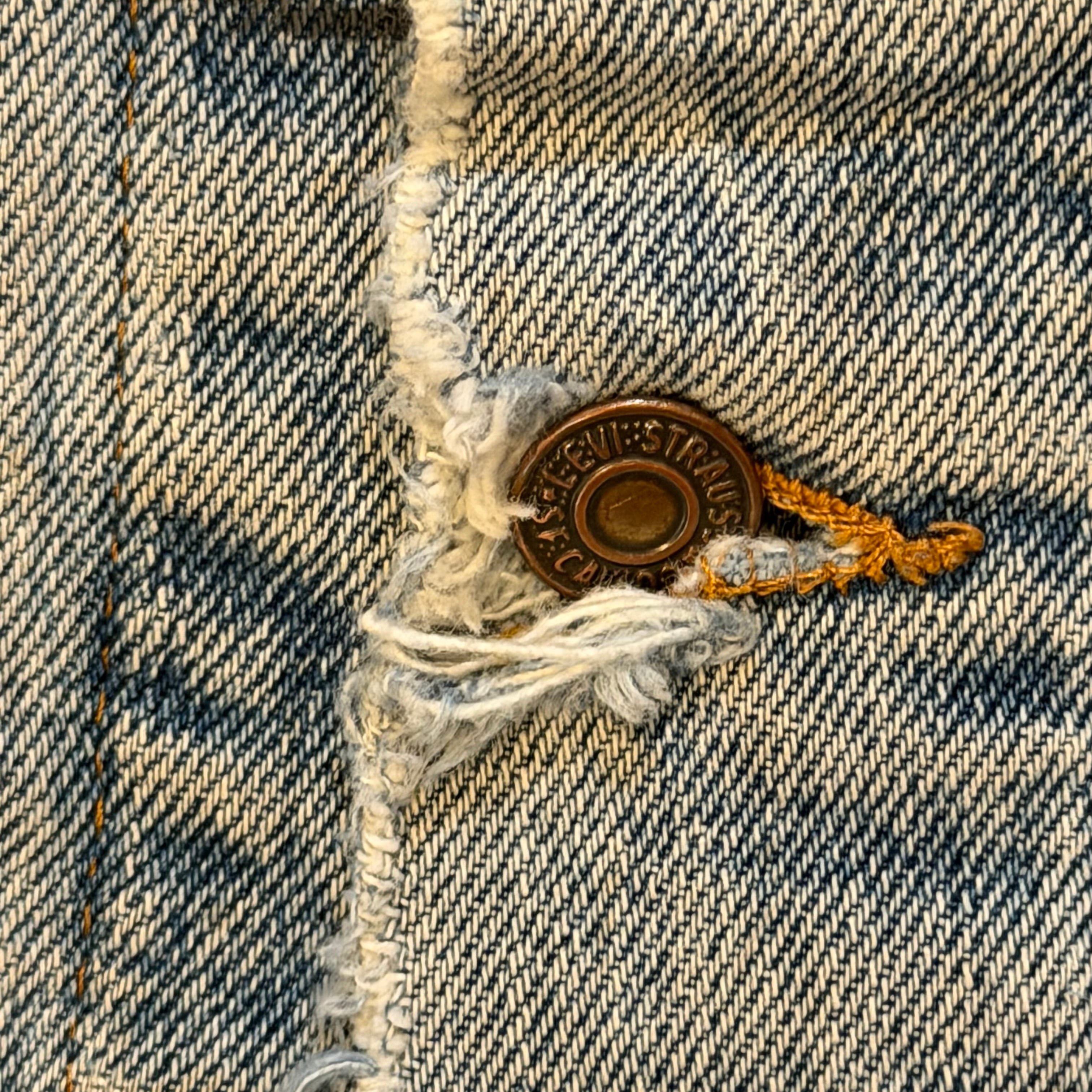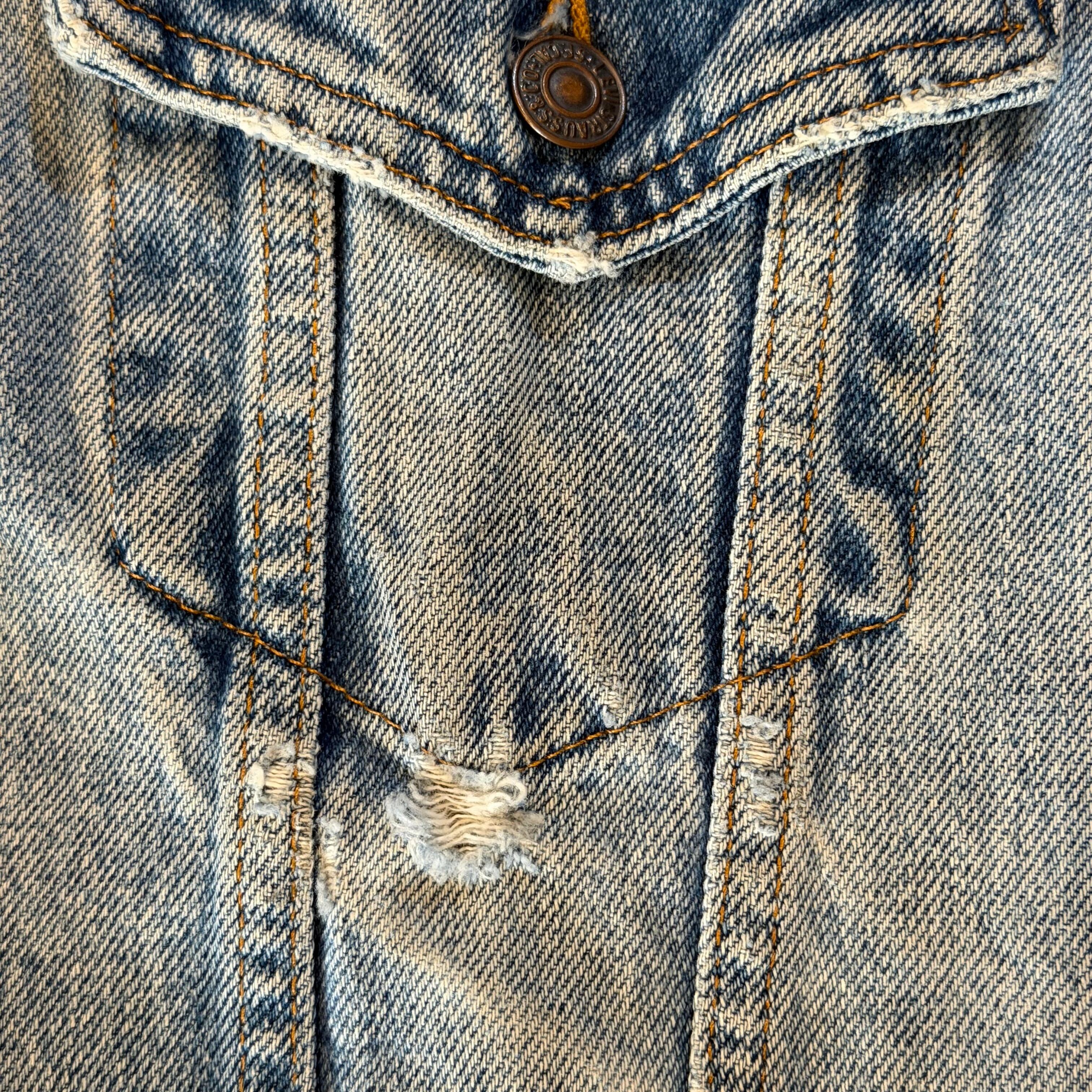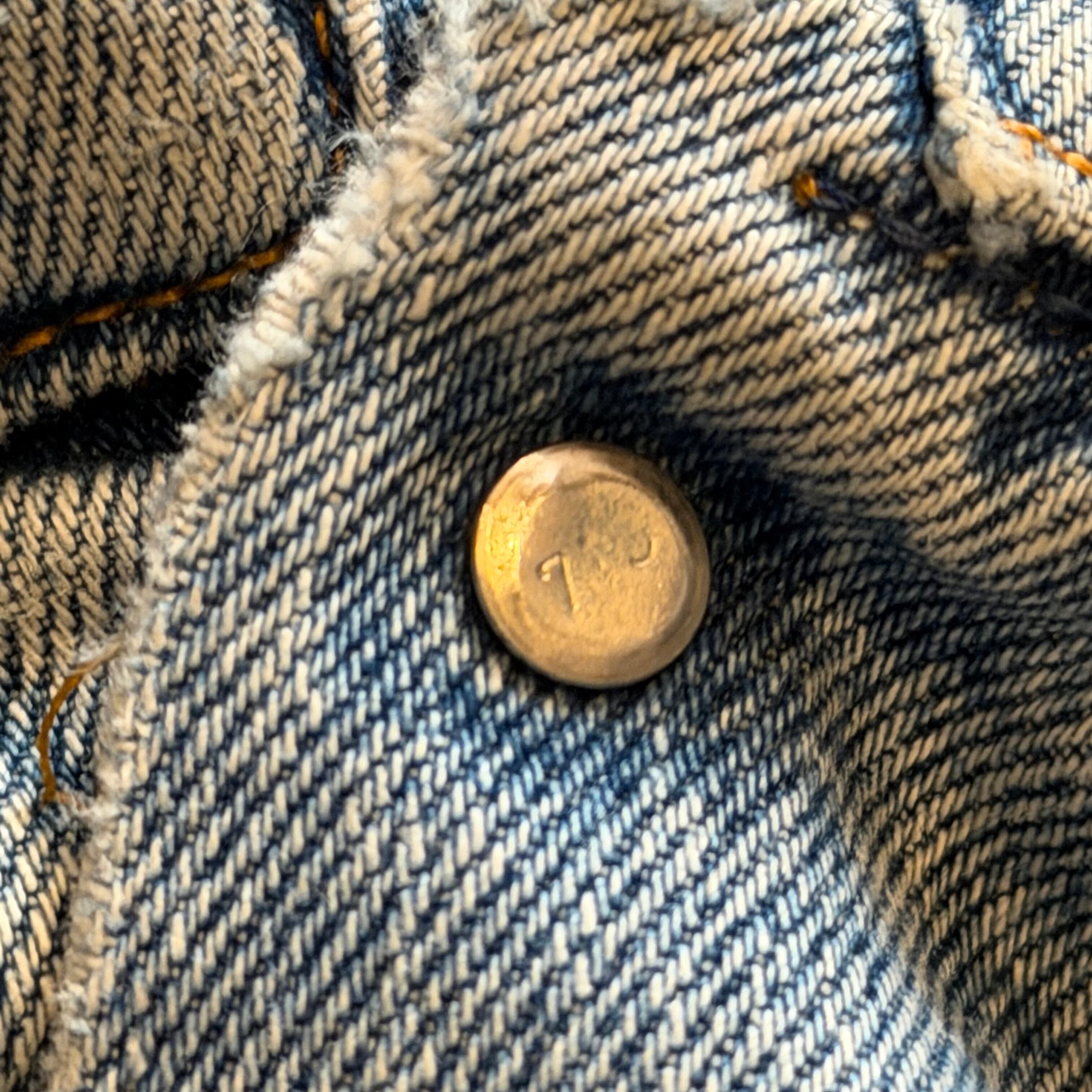 デニムの色味自体も春らしい白っぽくなった良い雰囲気で、第4ボタンのホールは使えなかったりとの古着らしいボロの雰囲気もまたカッコ良いです