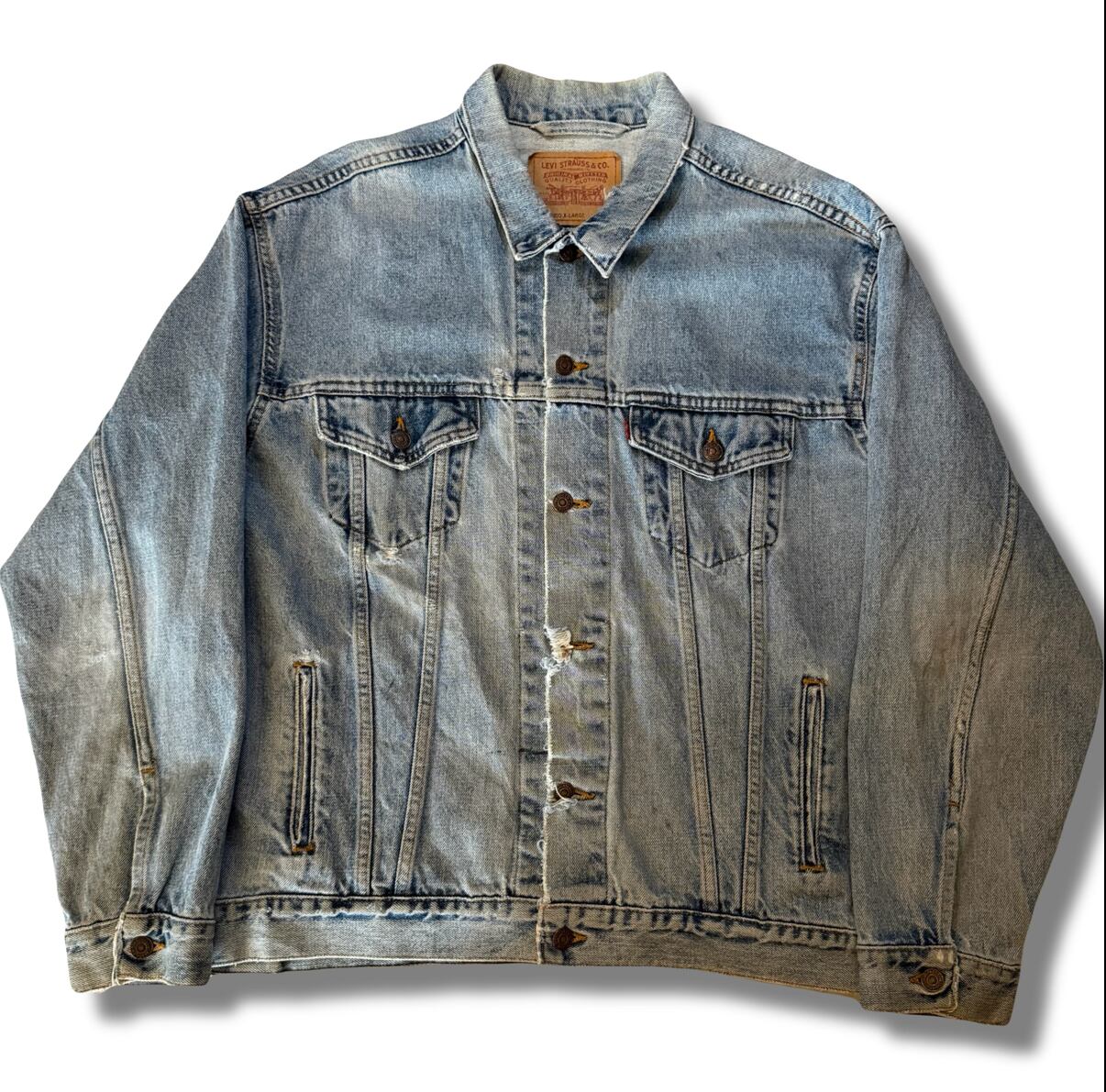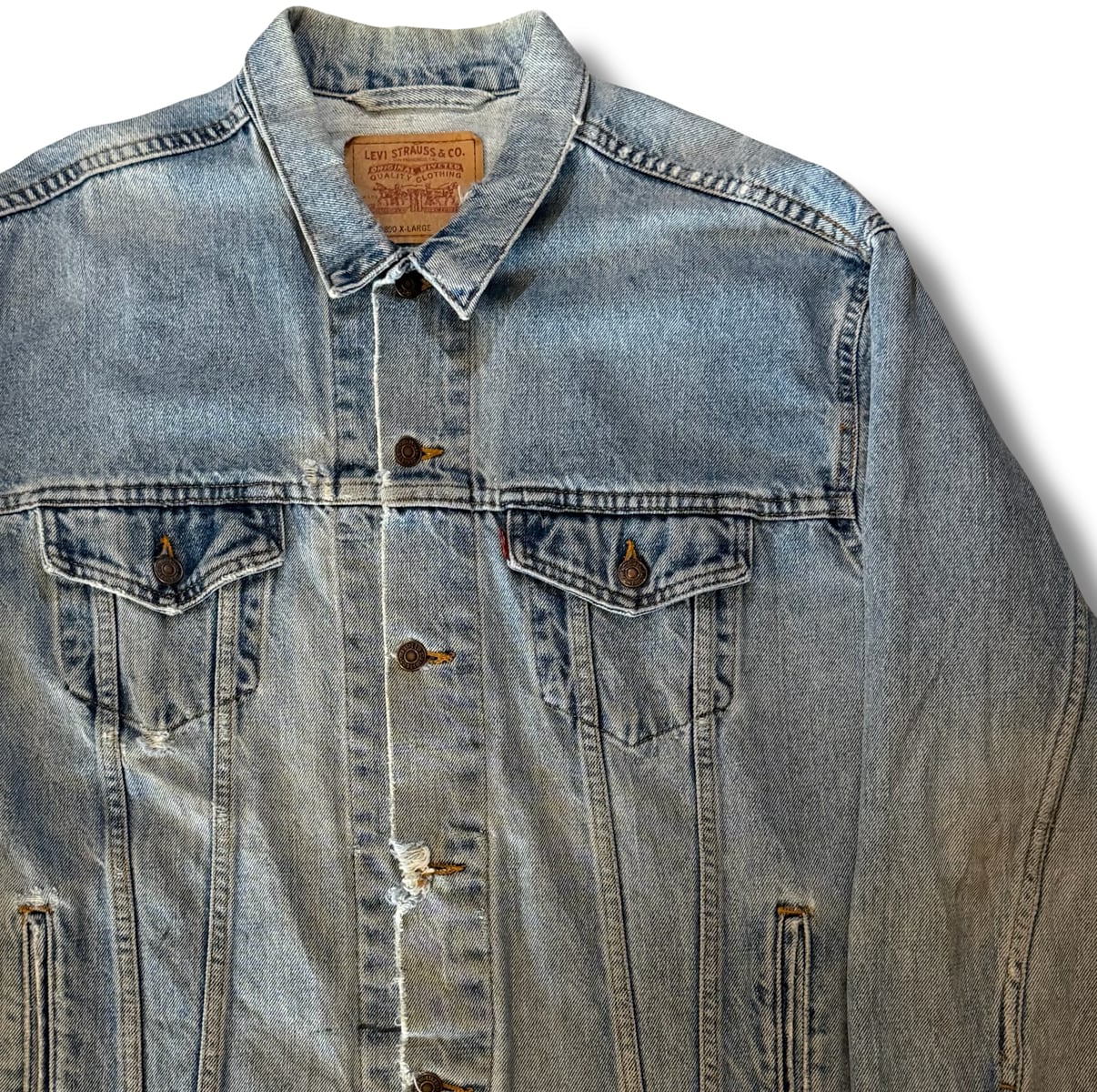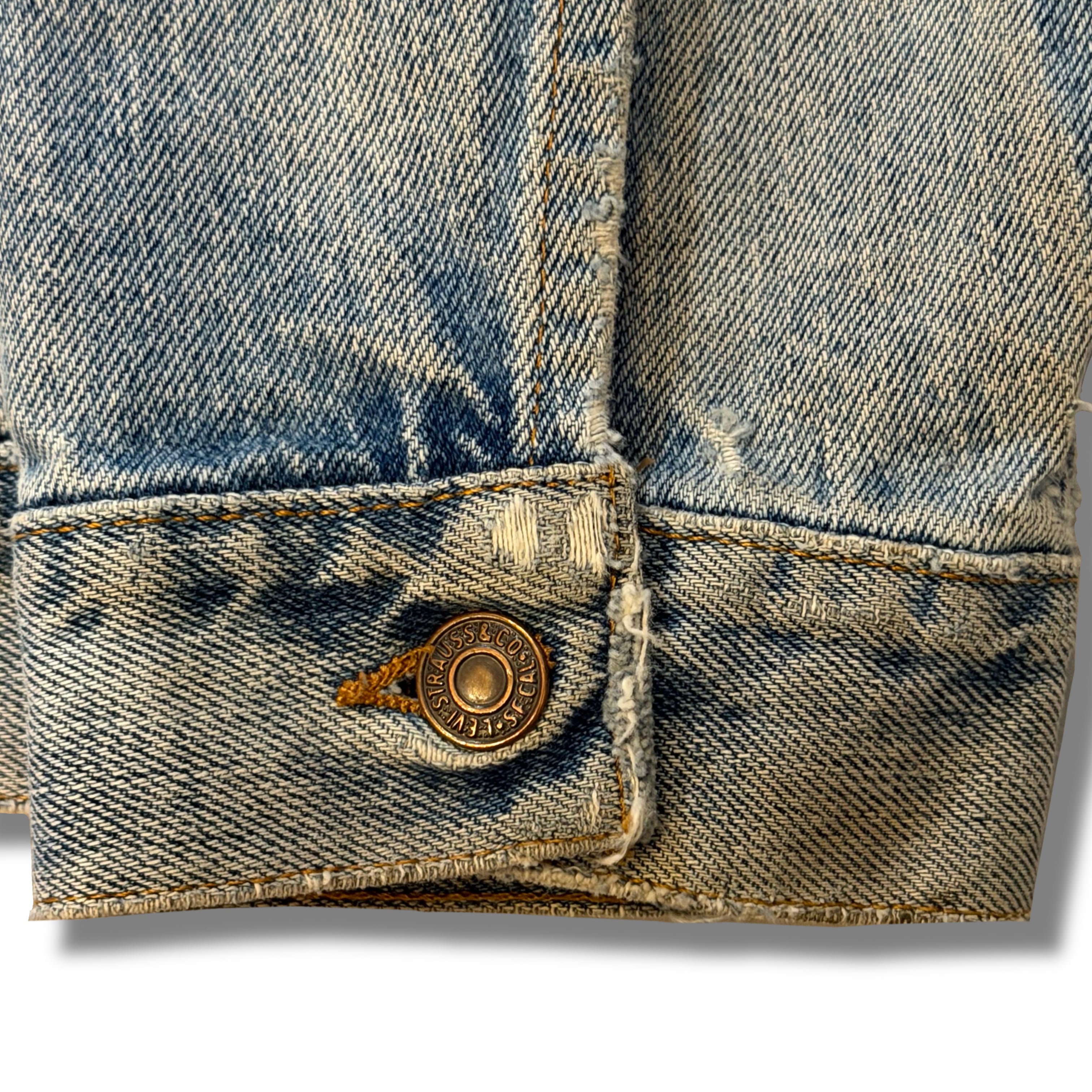 デニムの色味自体も春らしい白っぽくなった良い雰囲気で、第4ボタンのホールは使えなかったりとの古着らしいボロの雰囲気もまたカッコ良いです