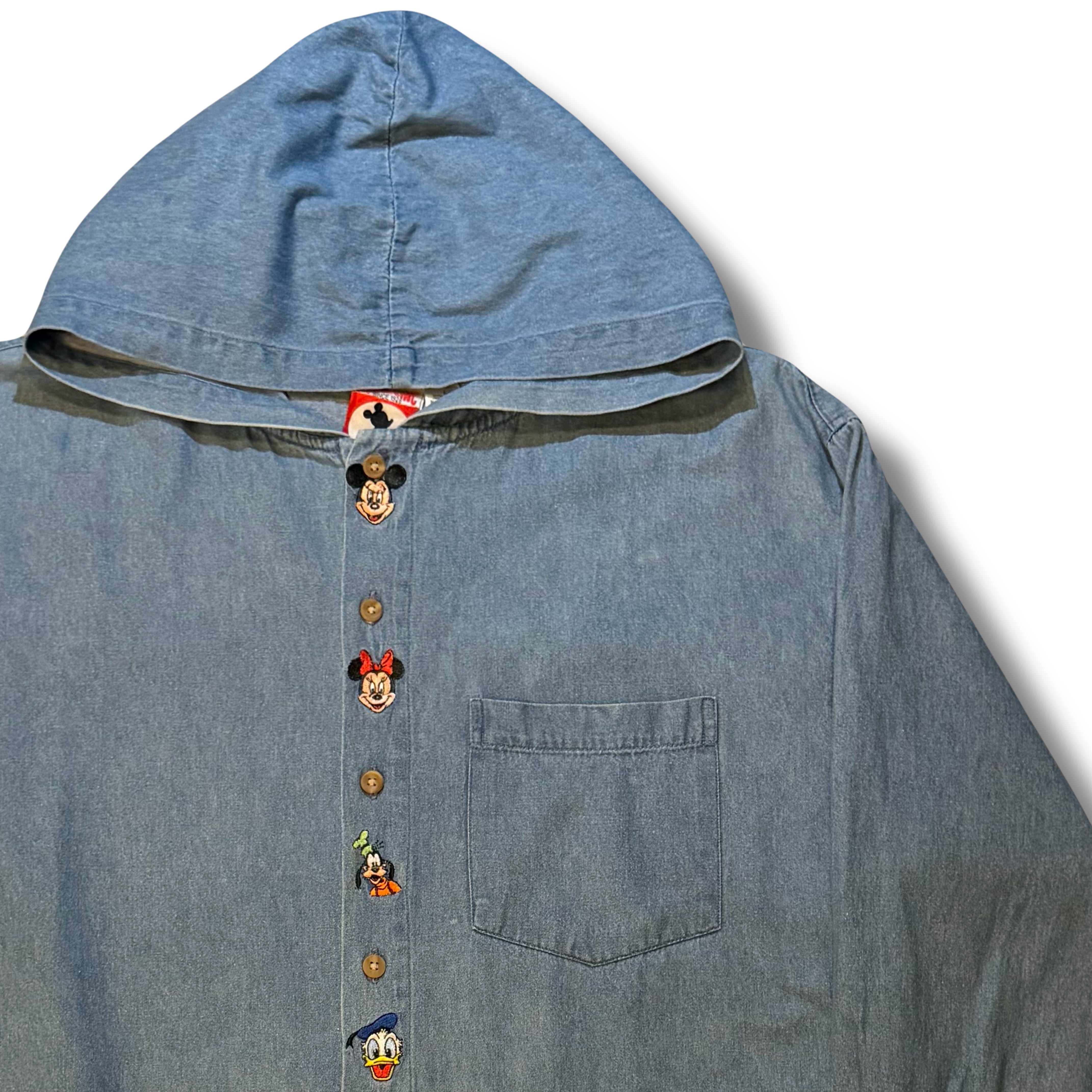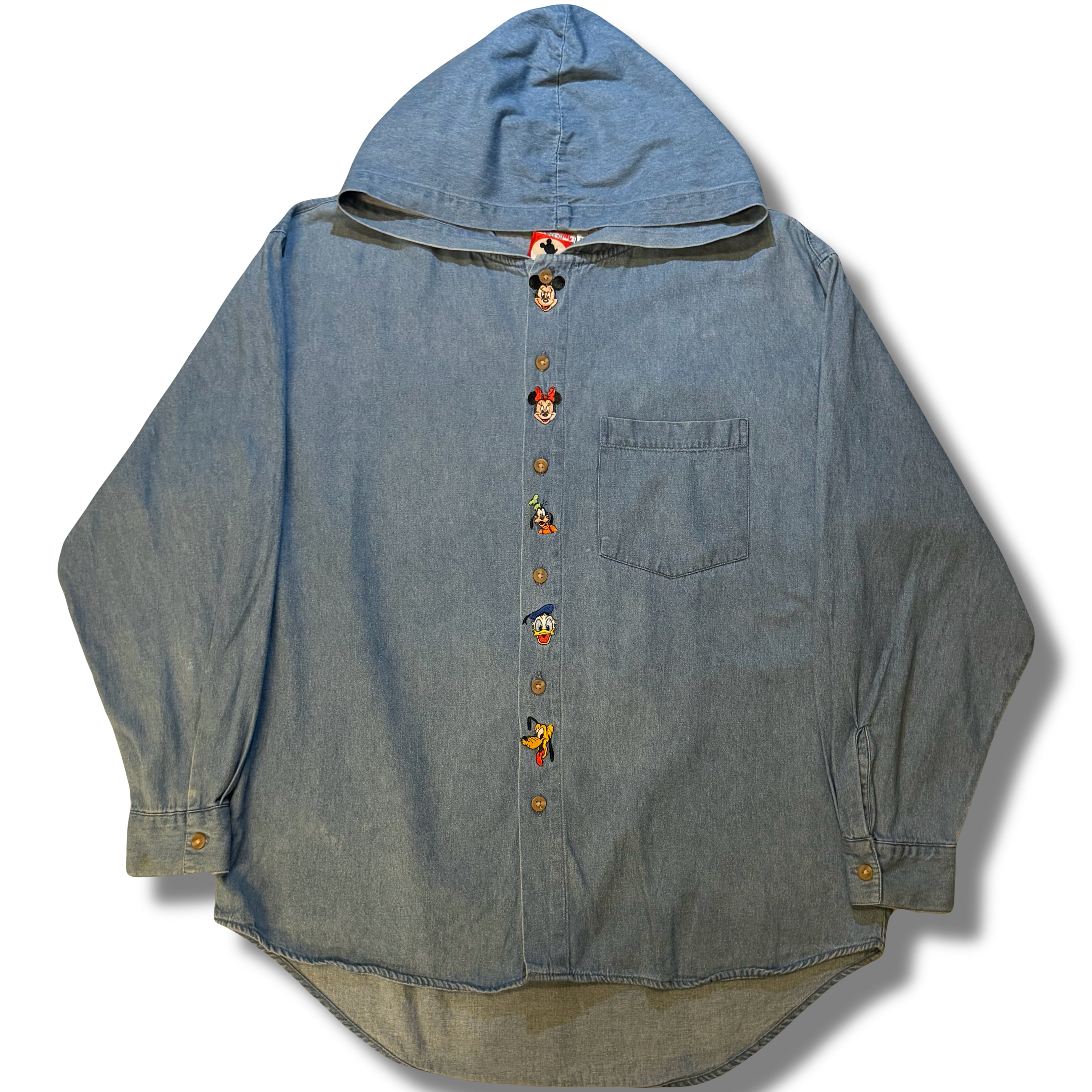 ディズニーの中でもデニムシャツ自体はミキフレやプーさん達に7人の小人など色んなデザインがある定番のアイテムですが、このフード付きのシャツに関しては球数も少ないアイテム...